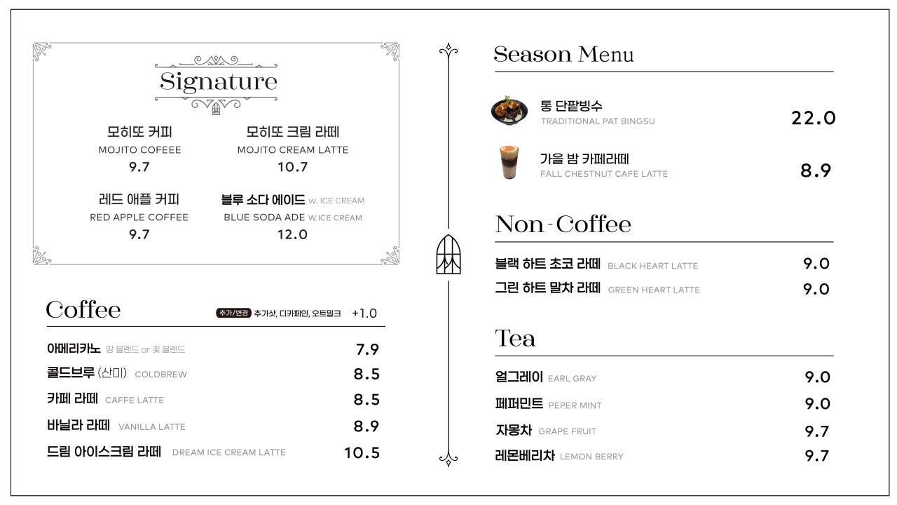 ( 레몬 베리 차(9,700), 모히또 크림 라테(10,700))과