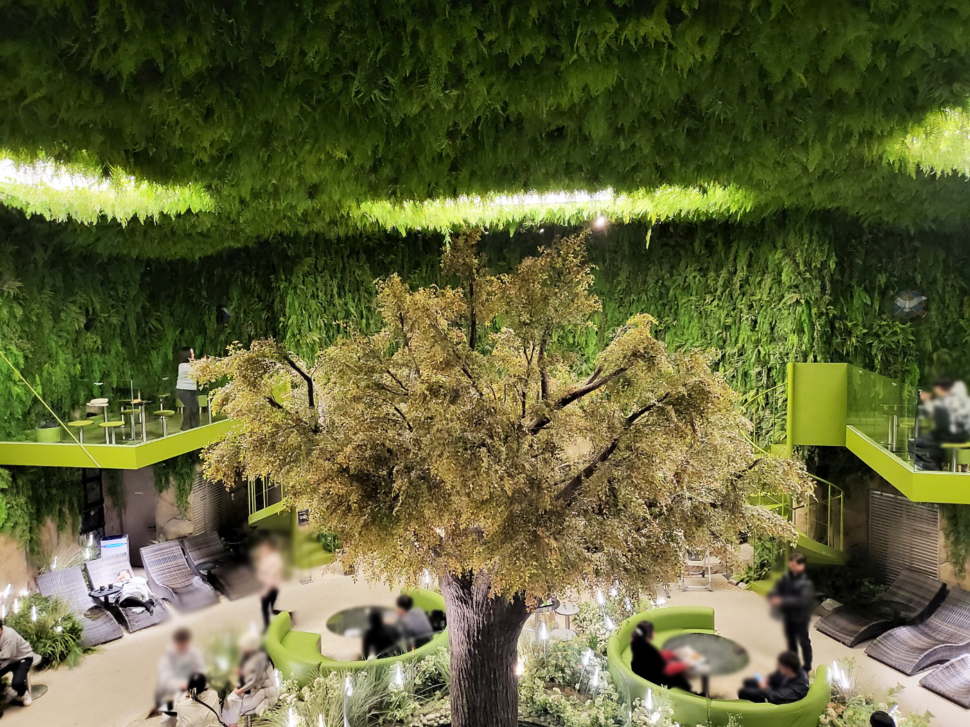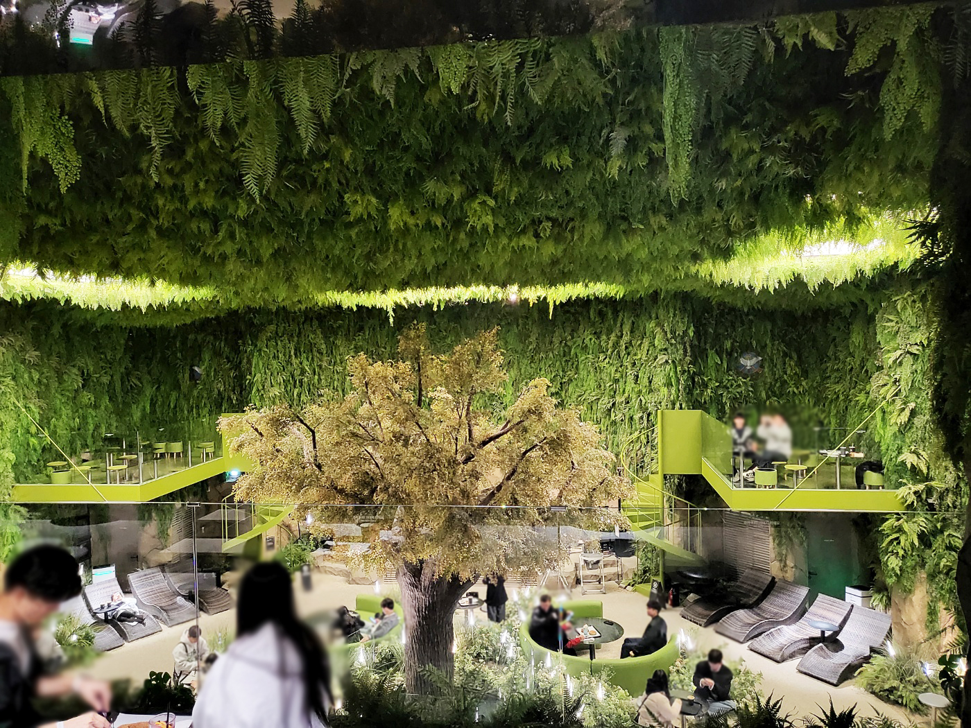 대형 나무와 함께 푸릇푸릇한 식물들과