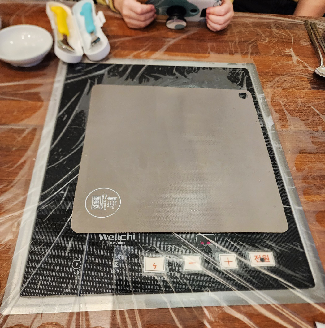 테이블 가운데에 인덕션이 놓여 있었는데요~!