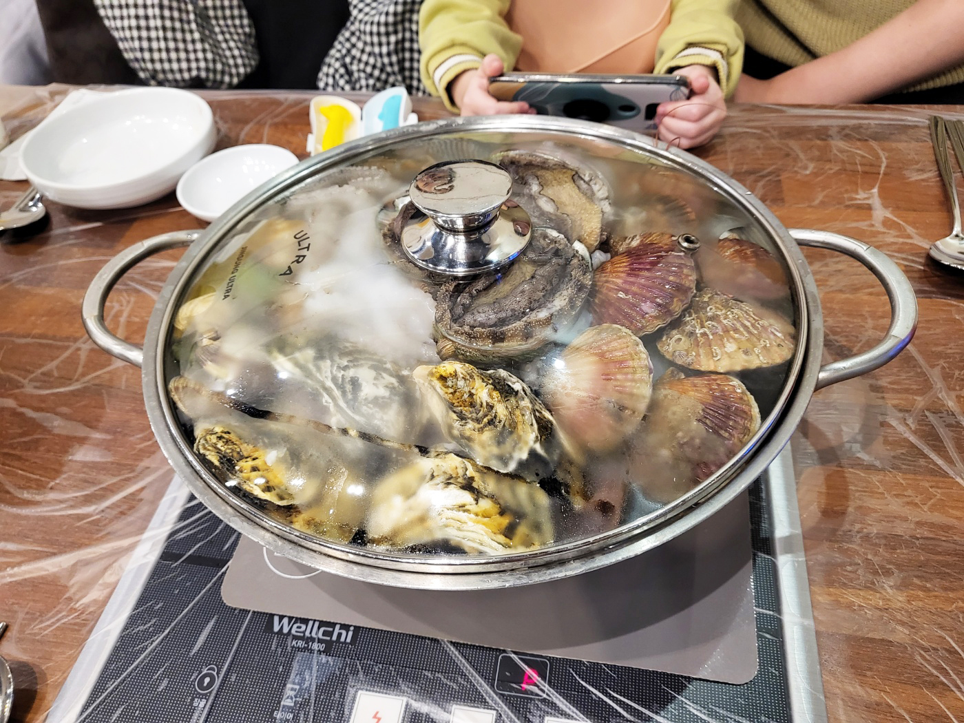 냄비 안이 꽉 차도록 활전복, 낙지 등