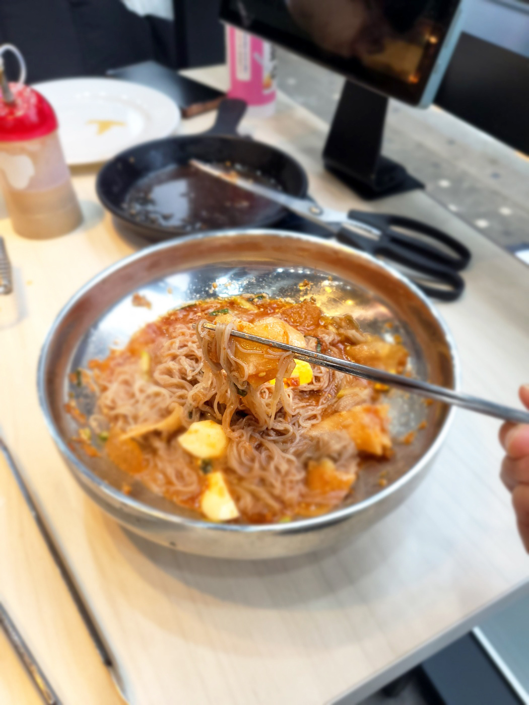 비빔냉면도 가위로 슥슥 자른