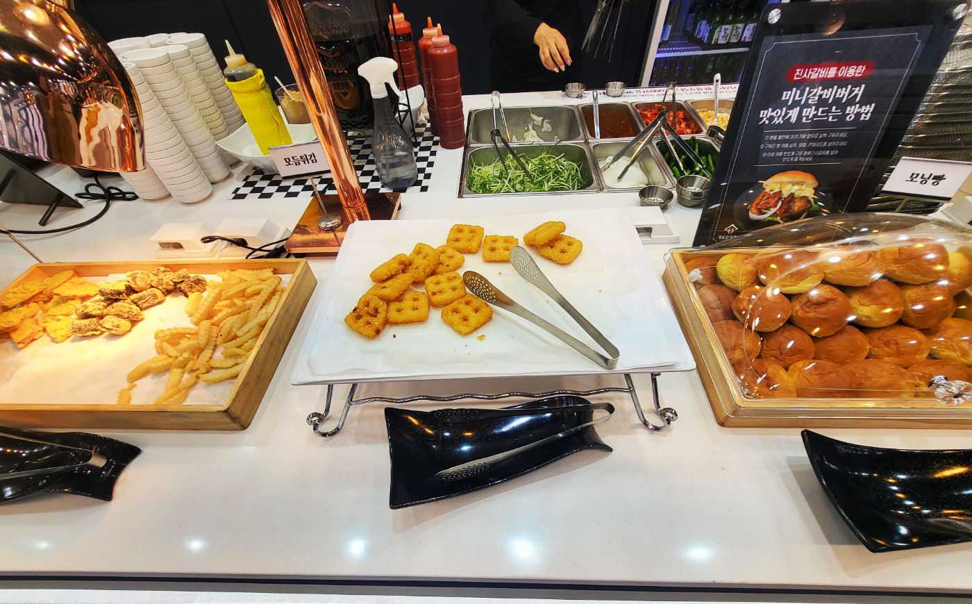 이외에도 잡채, 떡볶이, 튀김, 햄버거 빵 등