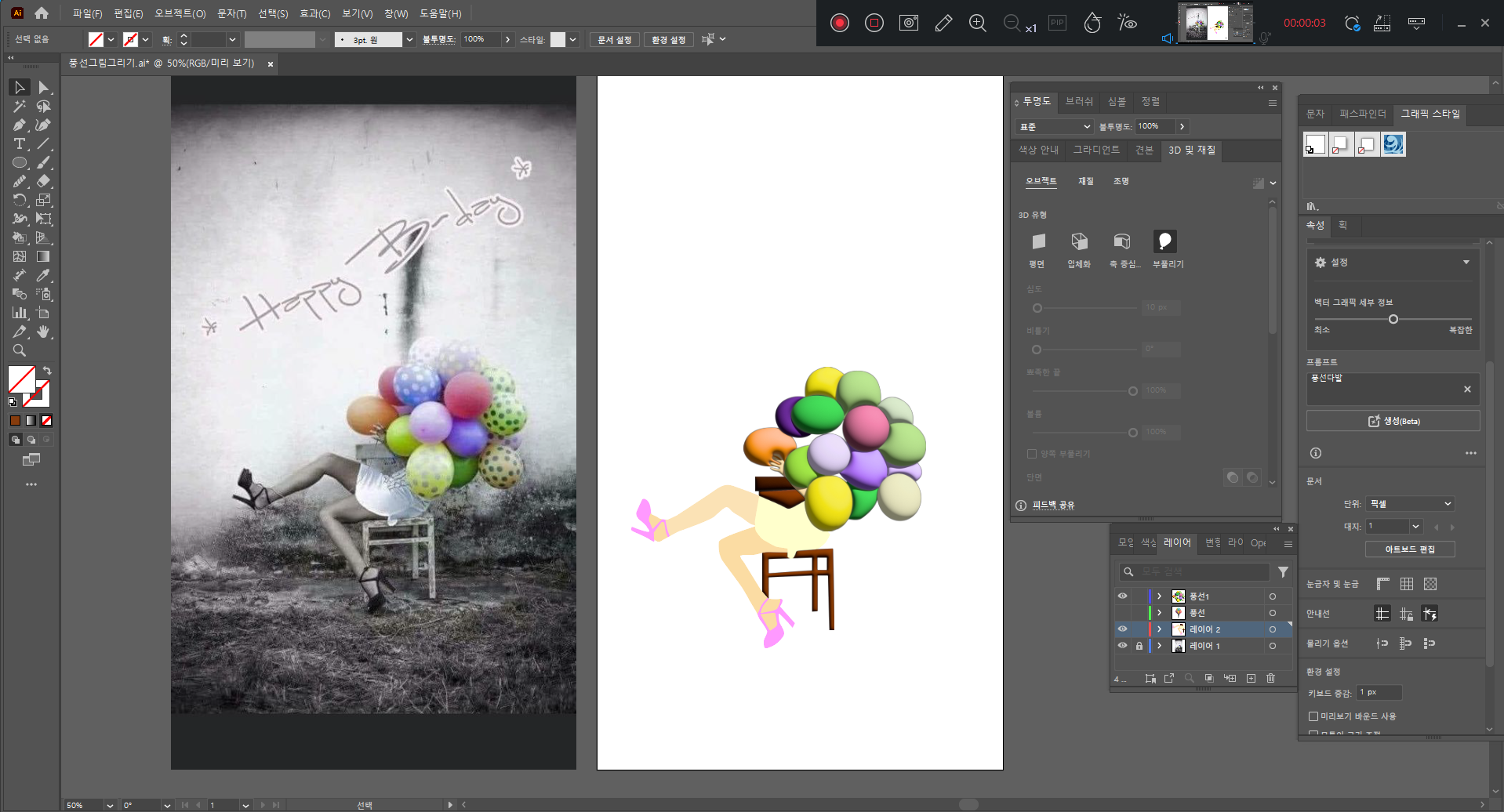 사진을 그림으로 풍선 일러스트 그림 그리기