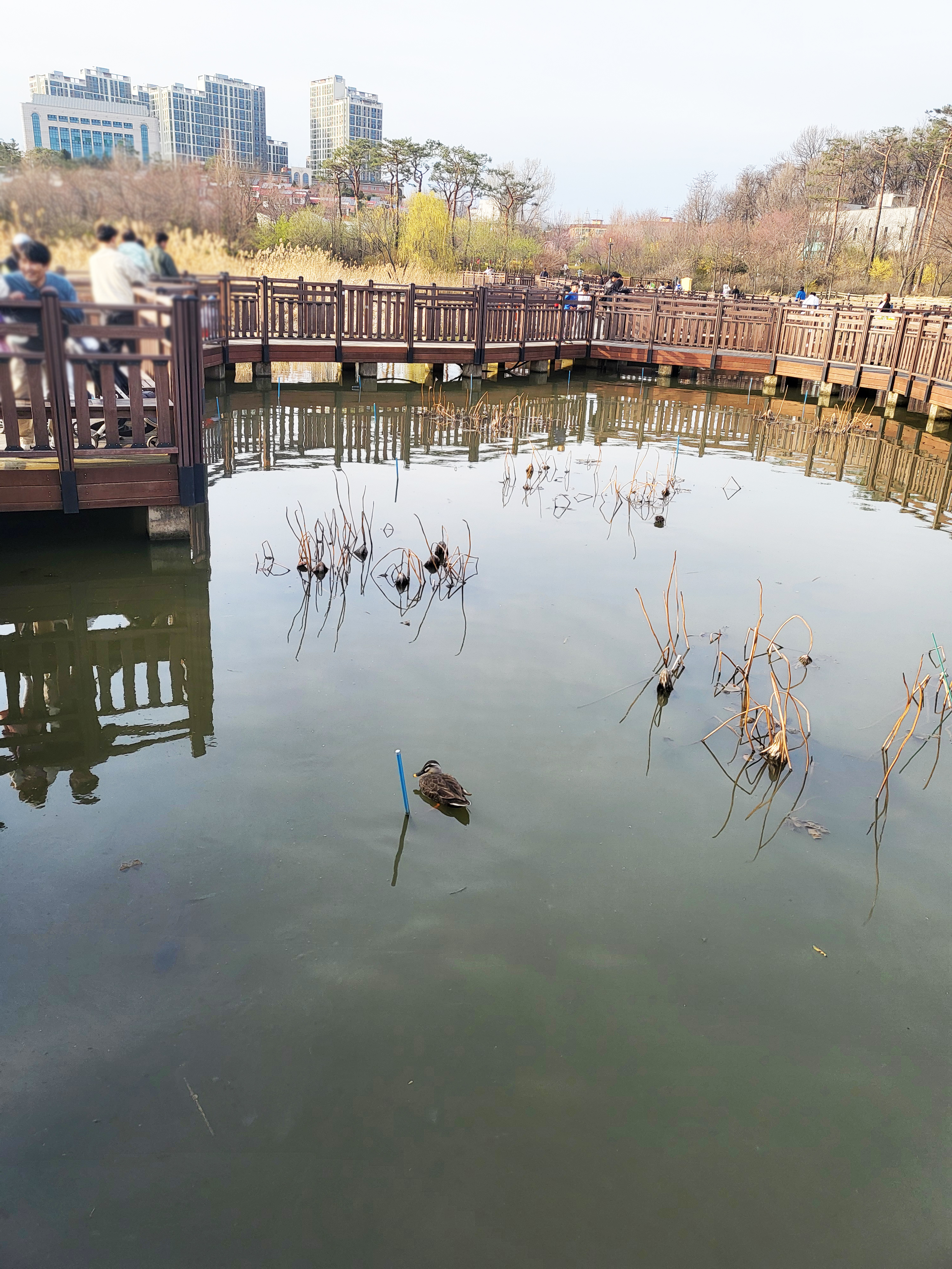 저수지에 보이는 오리와