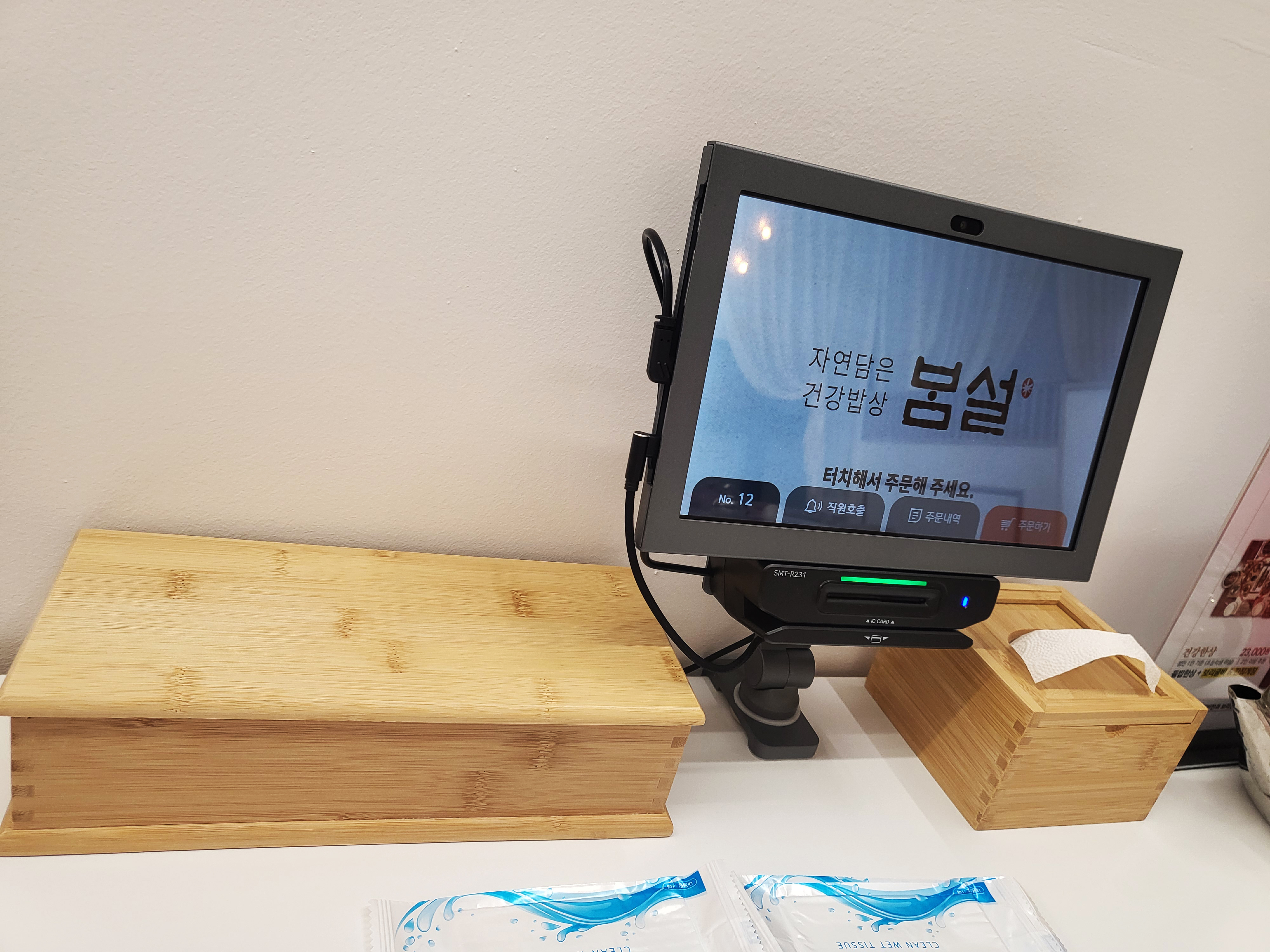 물티슈와 잔이 준비가 되었습니다.