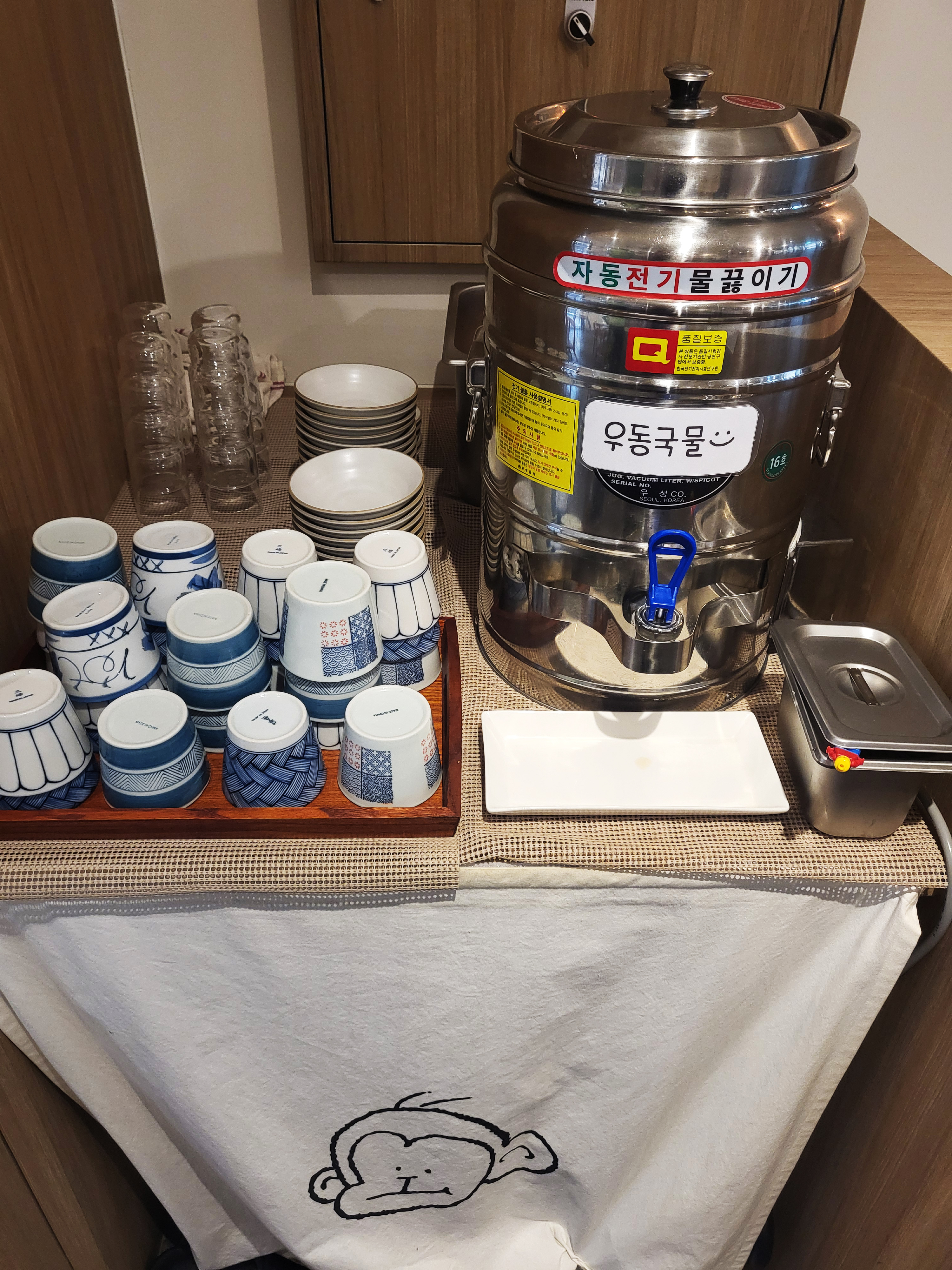 매장 한편에는 우동국물과 반찬 2가지를