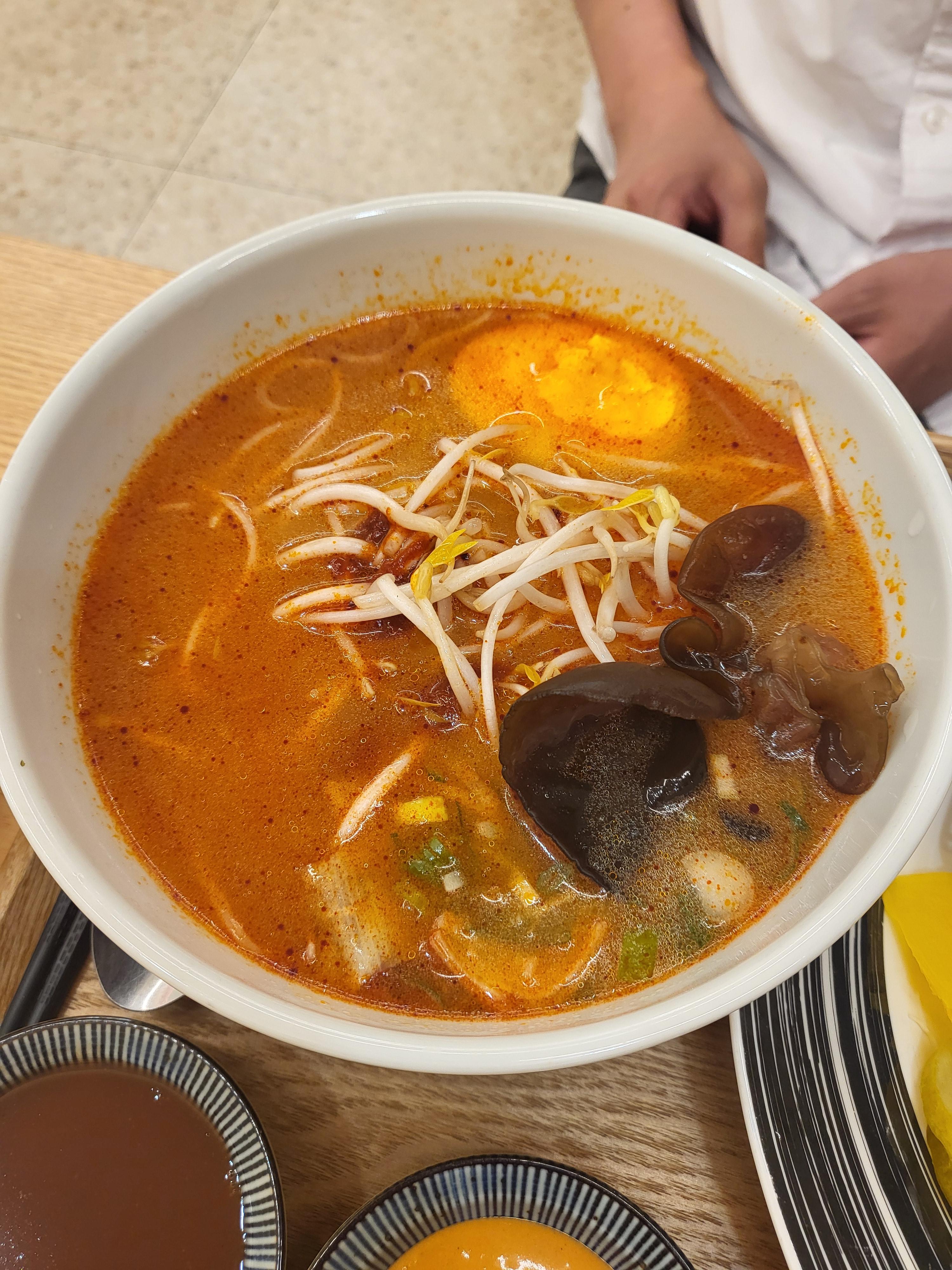 카라이라멘은 깊고 진한 육수와 숙주가 어우러져 시원한 맛을 느낄 수 있었습니다.