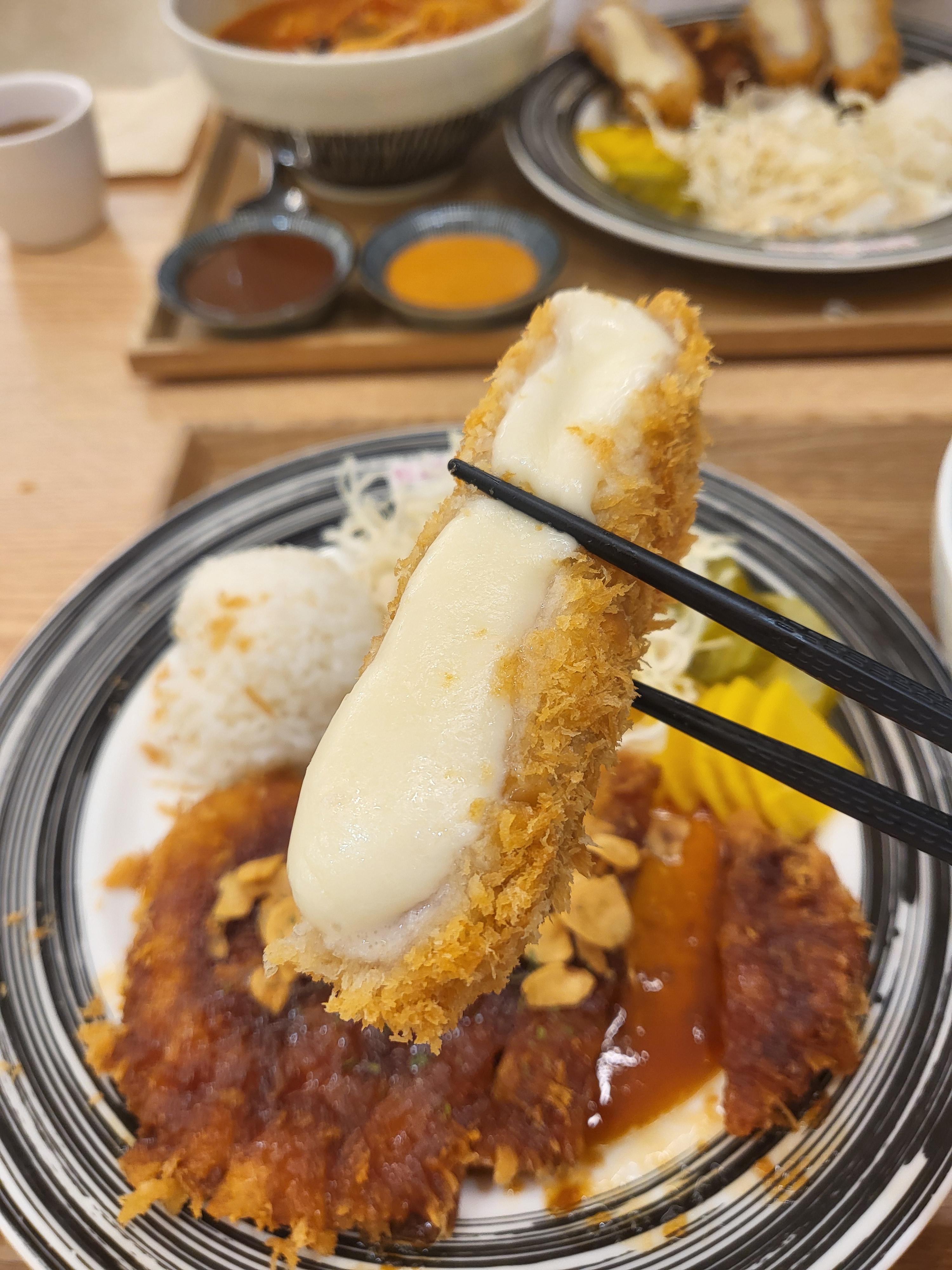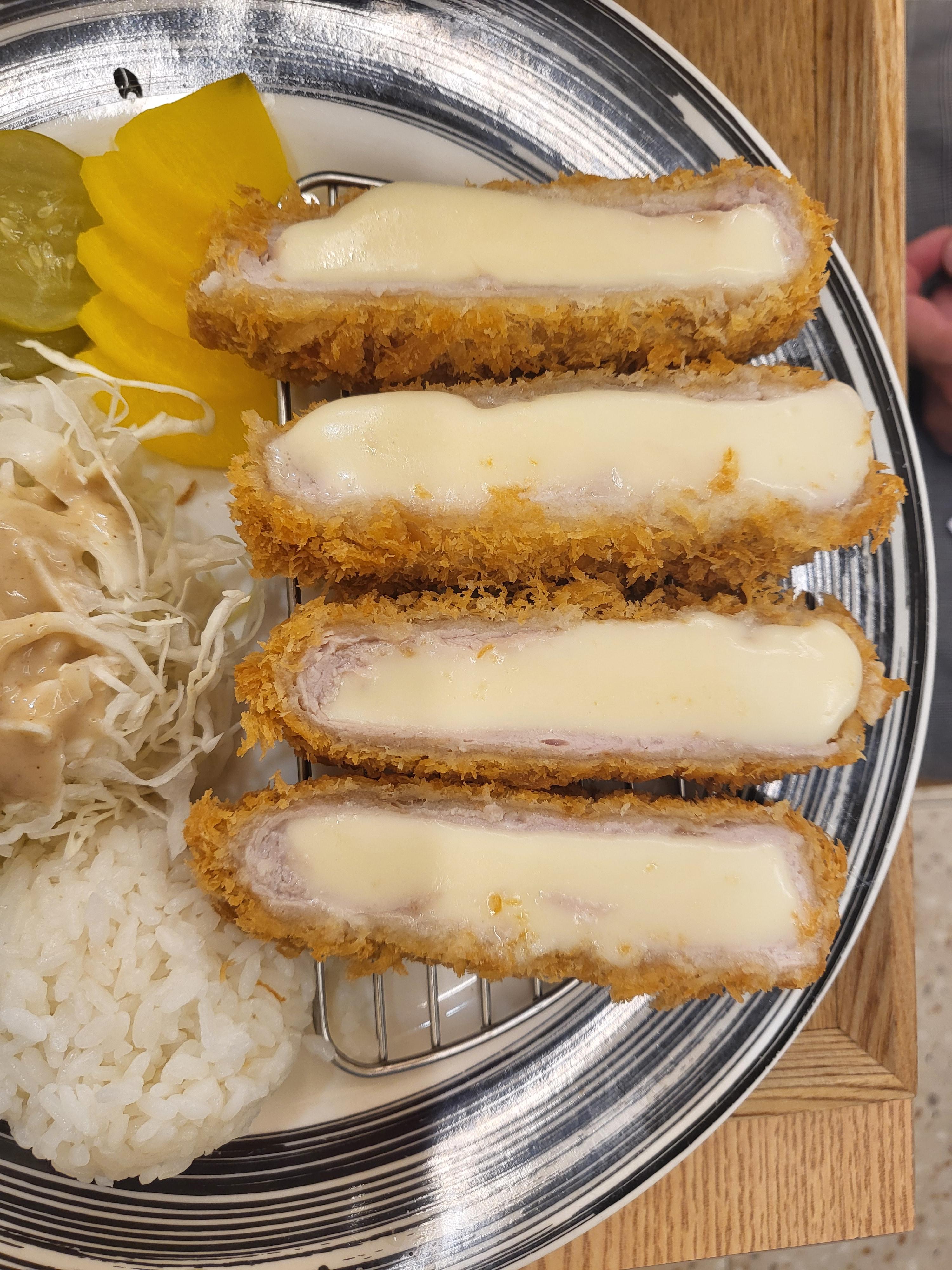 치즈돈가스는 모짜렐라 치즈가 듬뿍 들어가서 늘어뜨려 먹는 재미가 있었고,