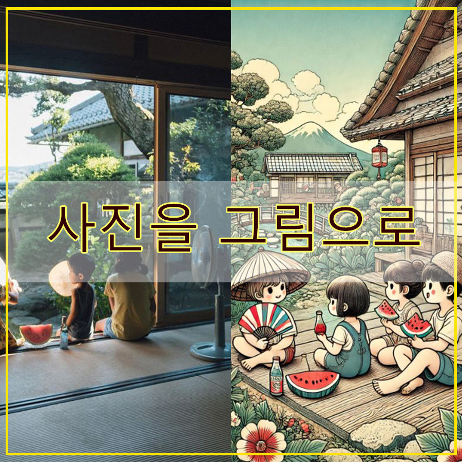원본 사진은 여름날 물놀이를 즐기고 있는
