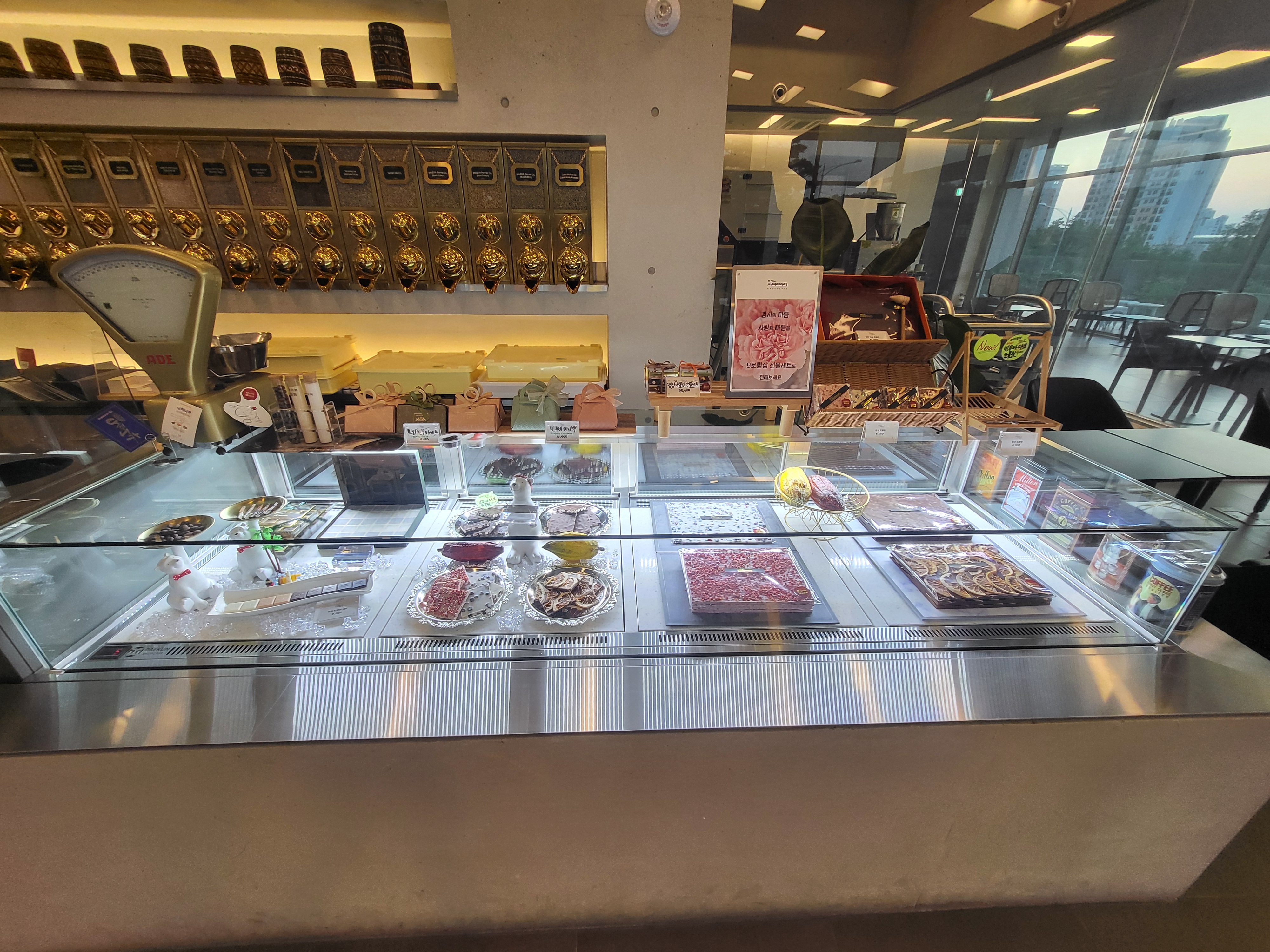 의 디저트 진열대에는 색색의 달콤한 간식들이 가득 차 있어 눈을 즐겁게 해줘요! 어떤 것을 선택할지 고민하게 만드는 매력이 있답니다.
