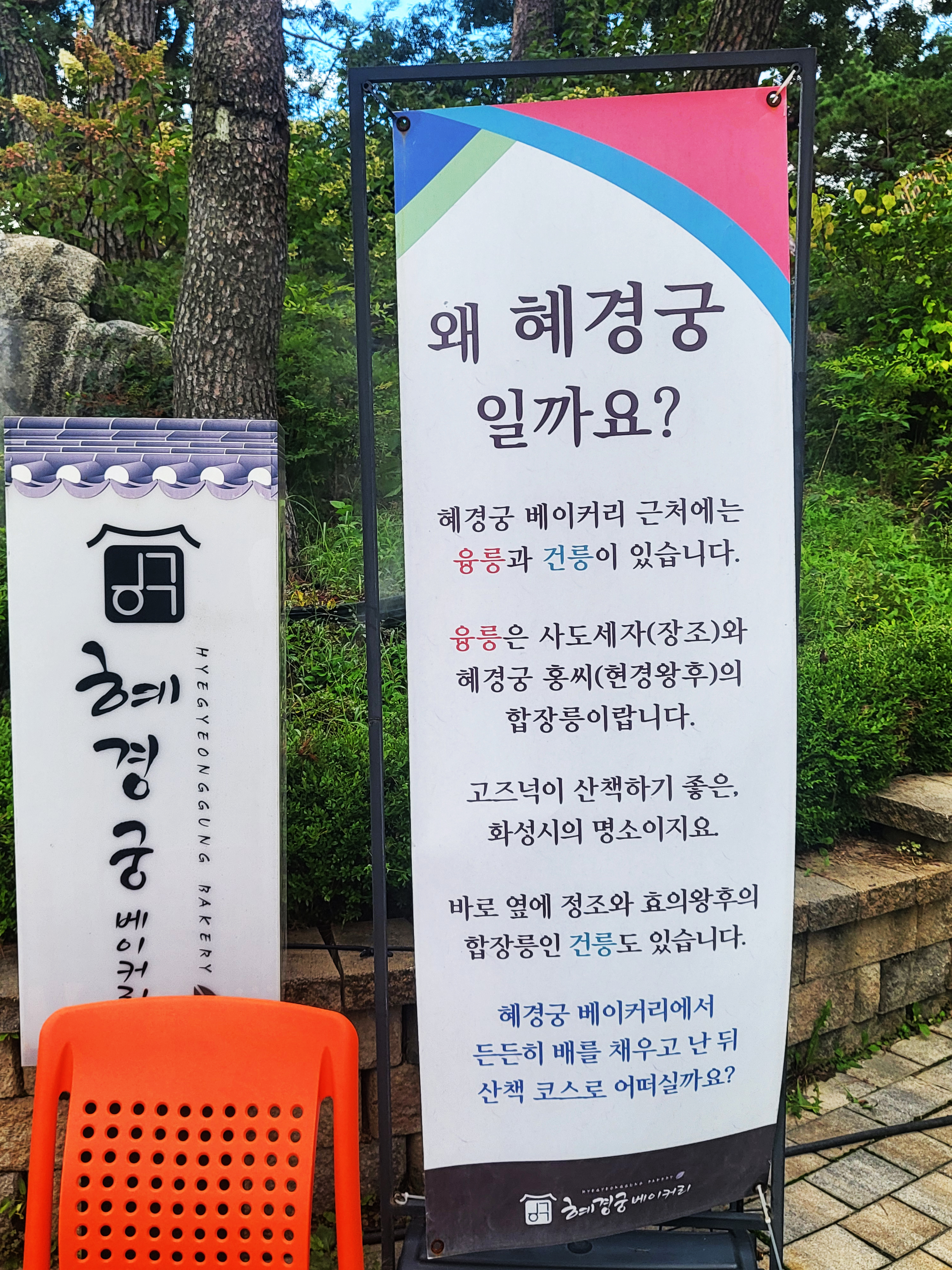 안내판을 보니, 혜경궁베이커리 근처에 융릉과 건릉이 있어 베이커리에서 식사를 마치고 나면 산책 코스로 딱 좋겠다 싶었답니다. 융릉은 사도세자와 혜경궁 홍씨의 합장릉이라고 하더라구요. 역사의 기운을 느낄 수 있는 특별한 장소라 더 흥미로웠어요.