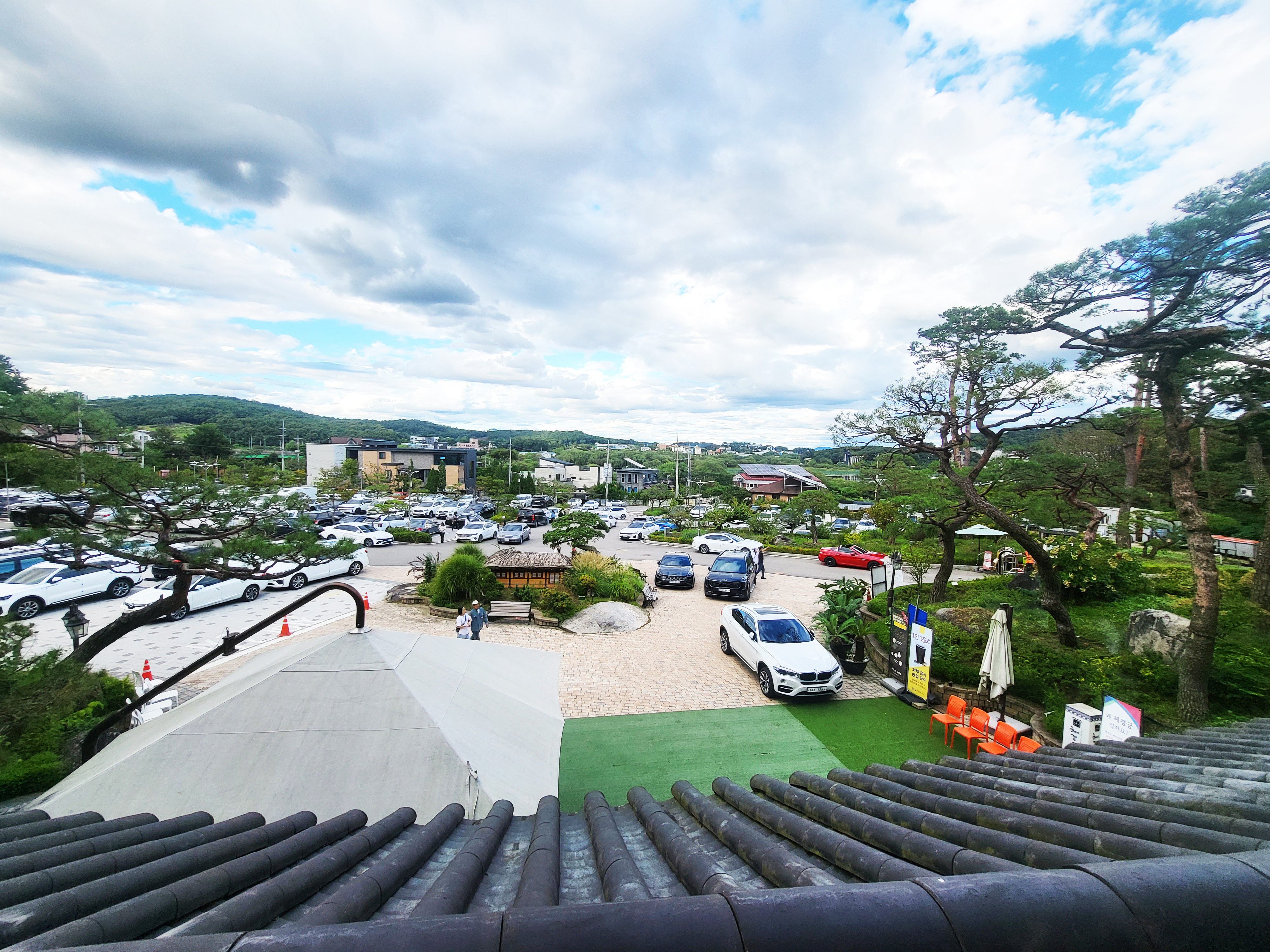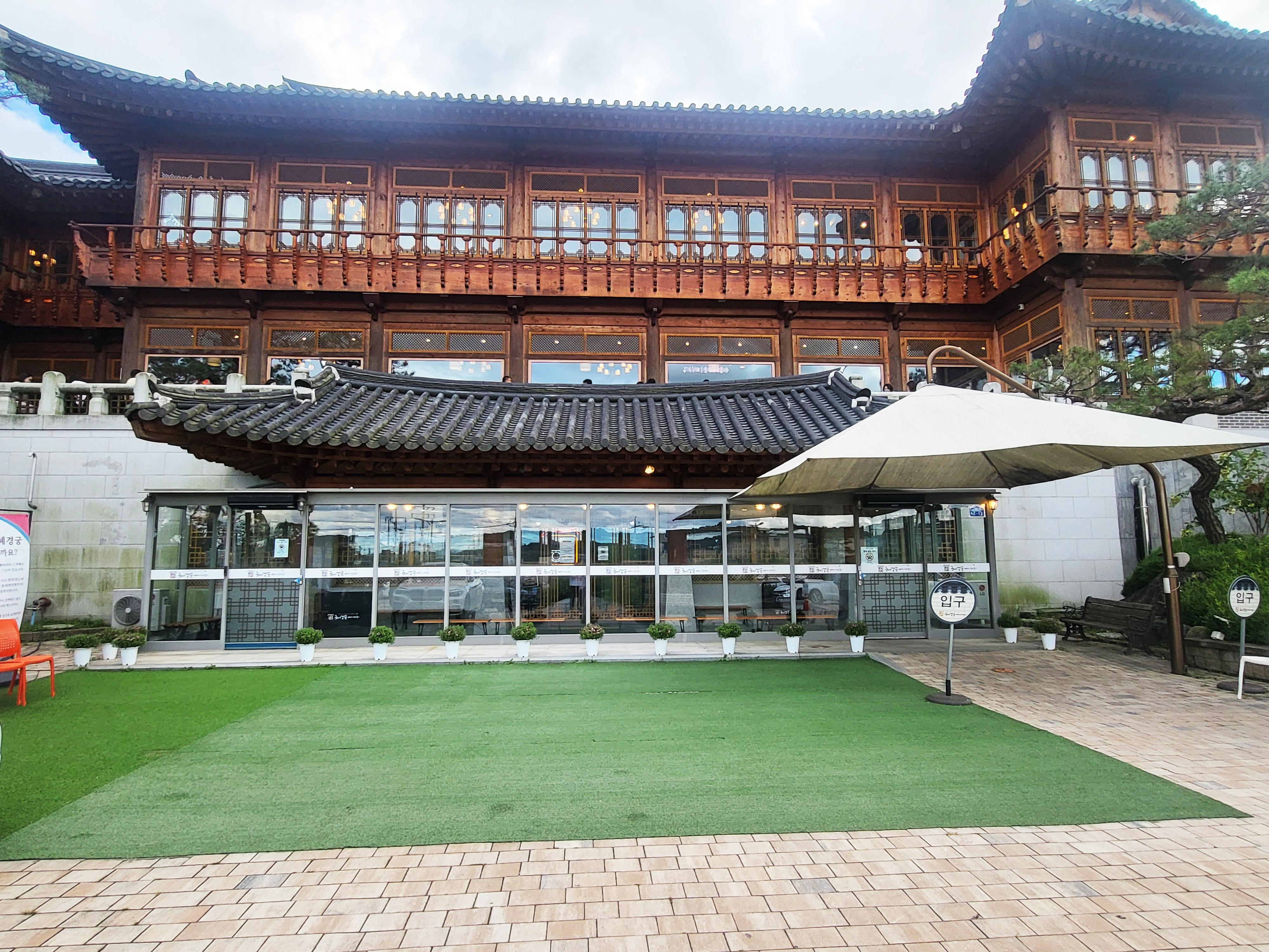 카페에 도착해 주차장에 차를 세우고, 한옥 건물로 다가가자마자 느껴진 그 웅장함! 한눈에 "아, 이곳은 진짜 특별하구나" 싶었어요. 입구는 넓고 깔끔하게 꾸며져 있었고, 그 주변으로는 잔잔한 정원도 있더라구요.