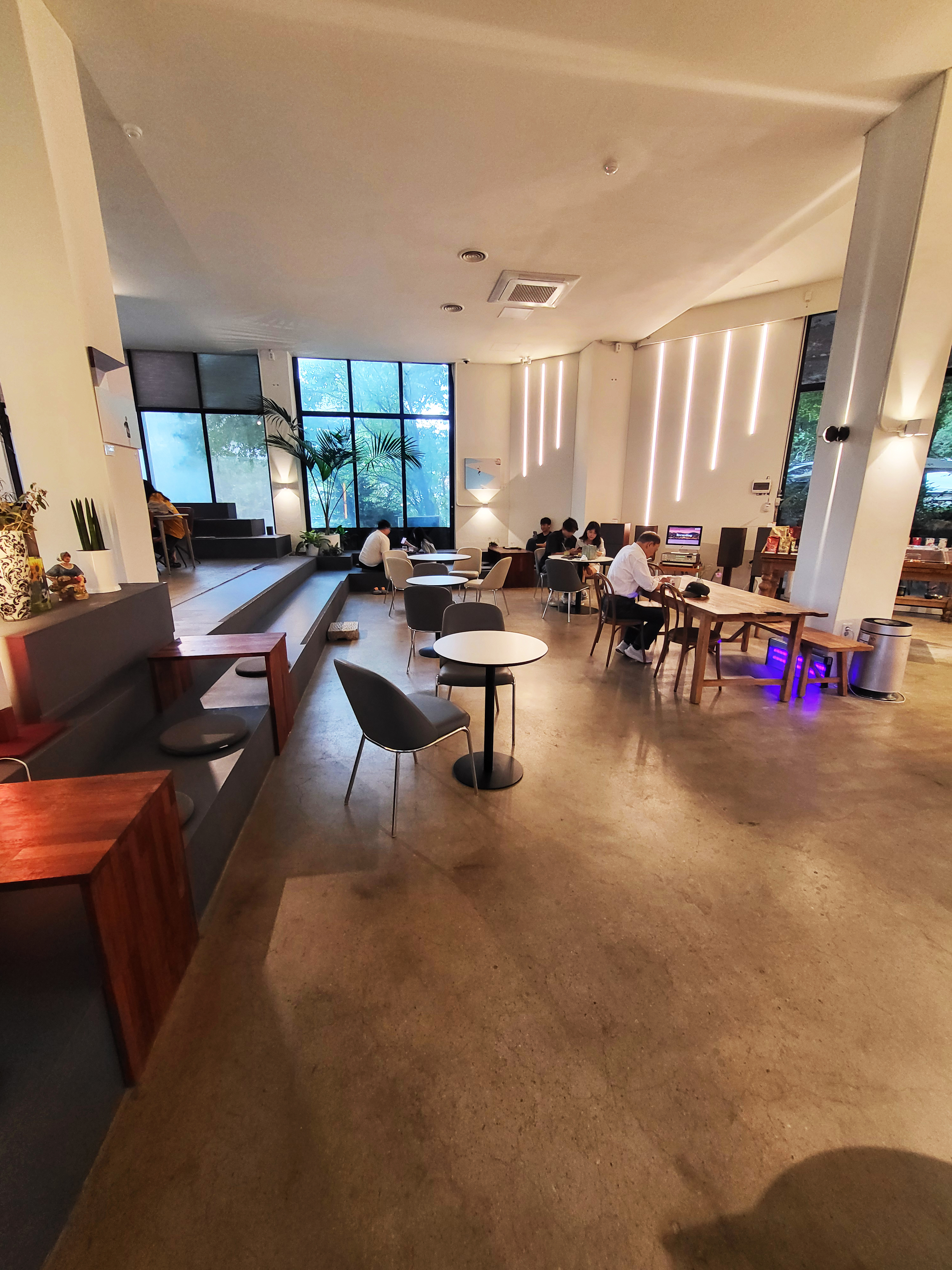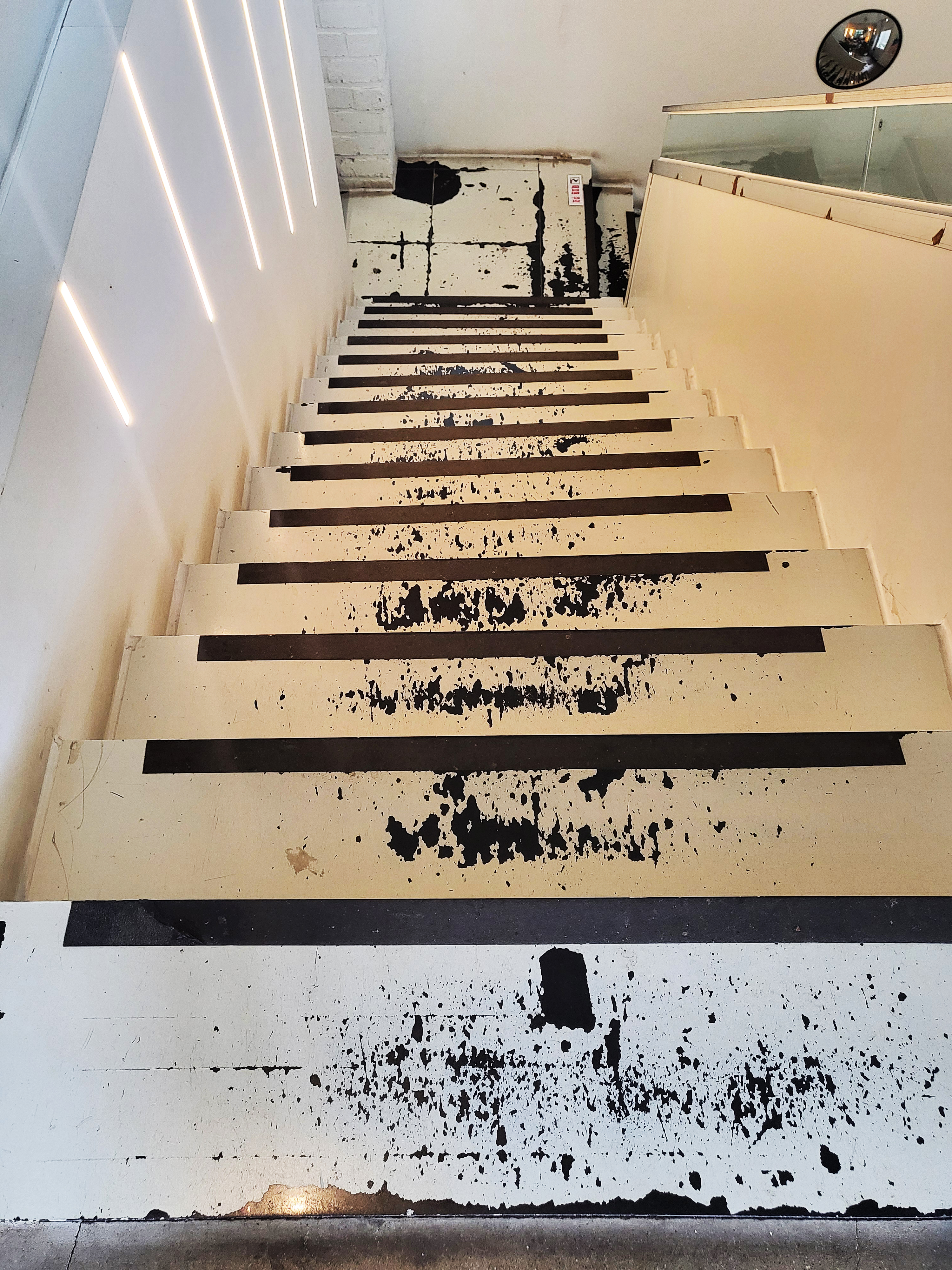 저는 2층으로 올라가봤는데요, 올라가는 계단 쪽 벽이 살짝 벗겨진 것처럼 보였는데 자세히 보니 원래부터 의도적으로 칠해진 스타일이더라구요. 그런 디테일들이 참 인상적이었어요.