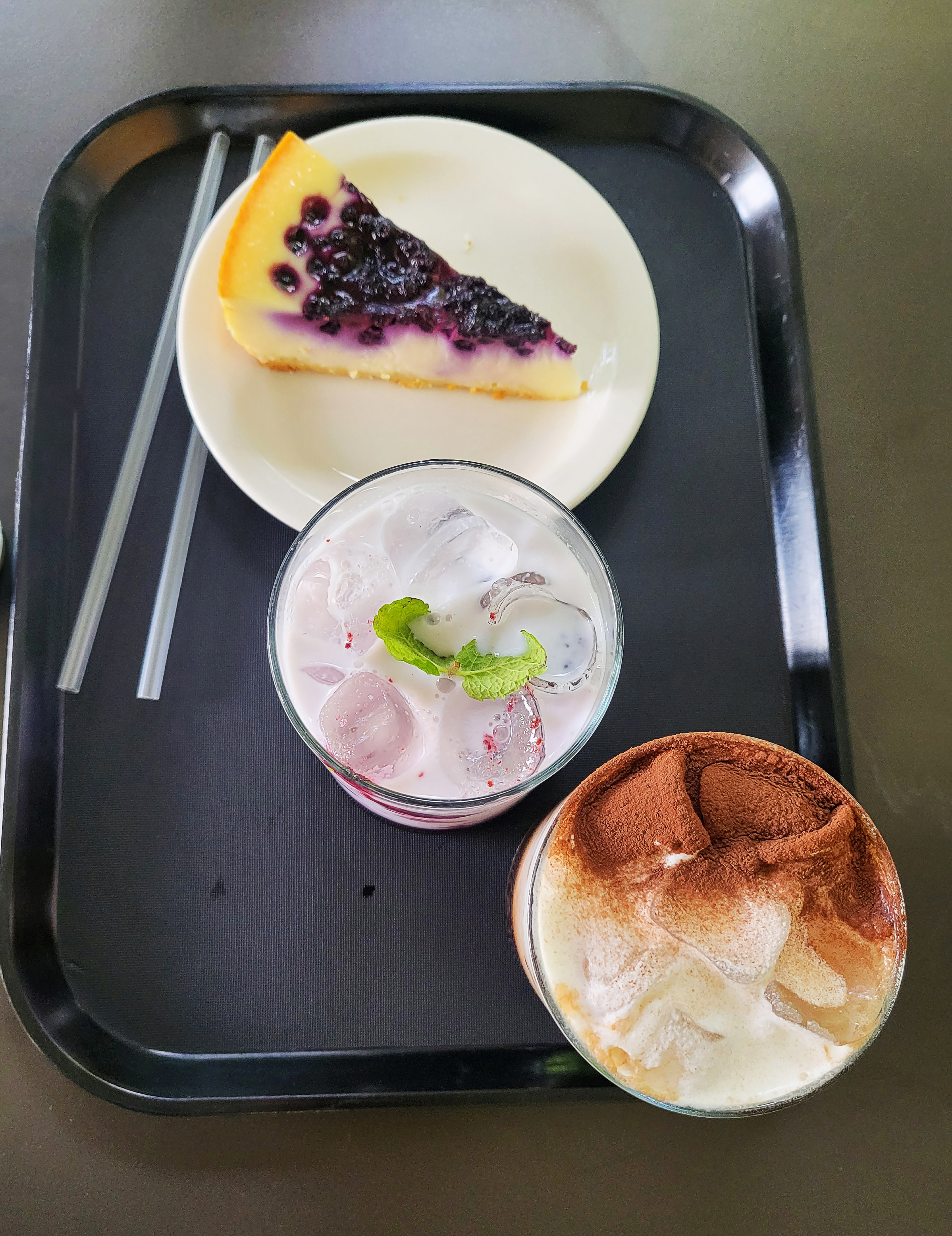 이번에 주문한 메뉴는 '블루치즈케이크', '아이스 블루베리라떼', '아이스 초코라떼'였어요.