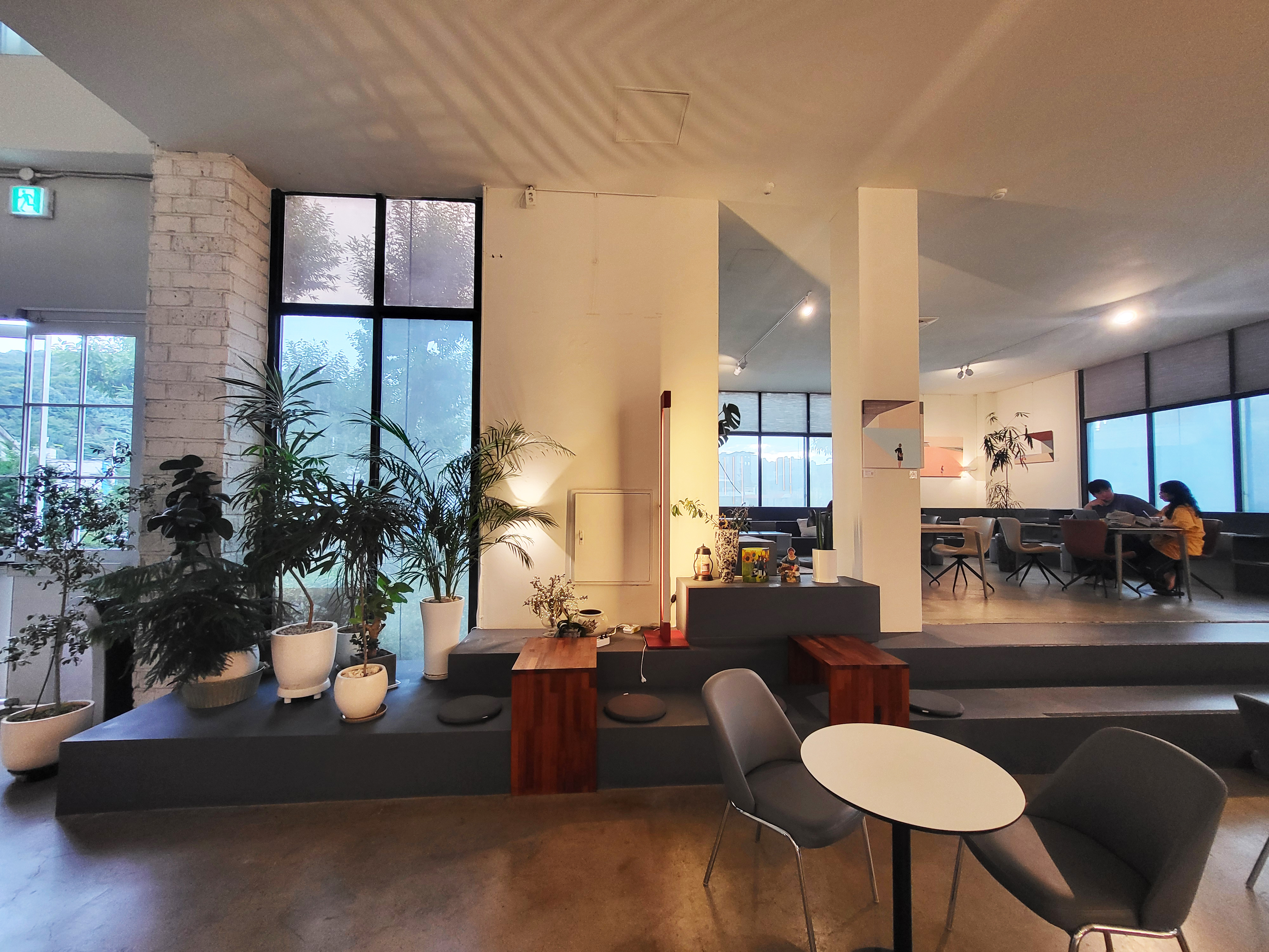 카페 내부로 들어가면 초록빛 가득한 식물들이 공간을 채우고 있어서 자연스럽게 힐링되는 느낌을 받았어요.
