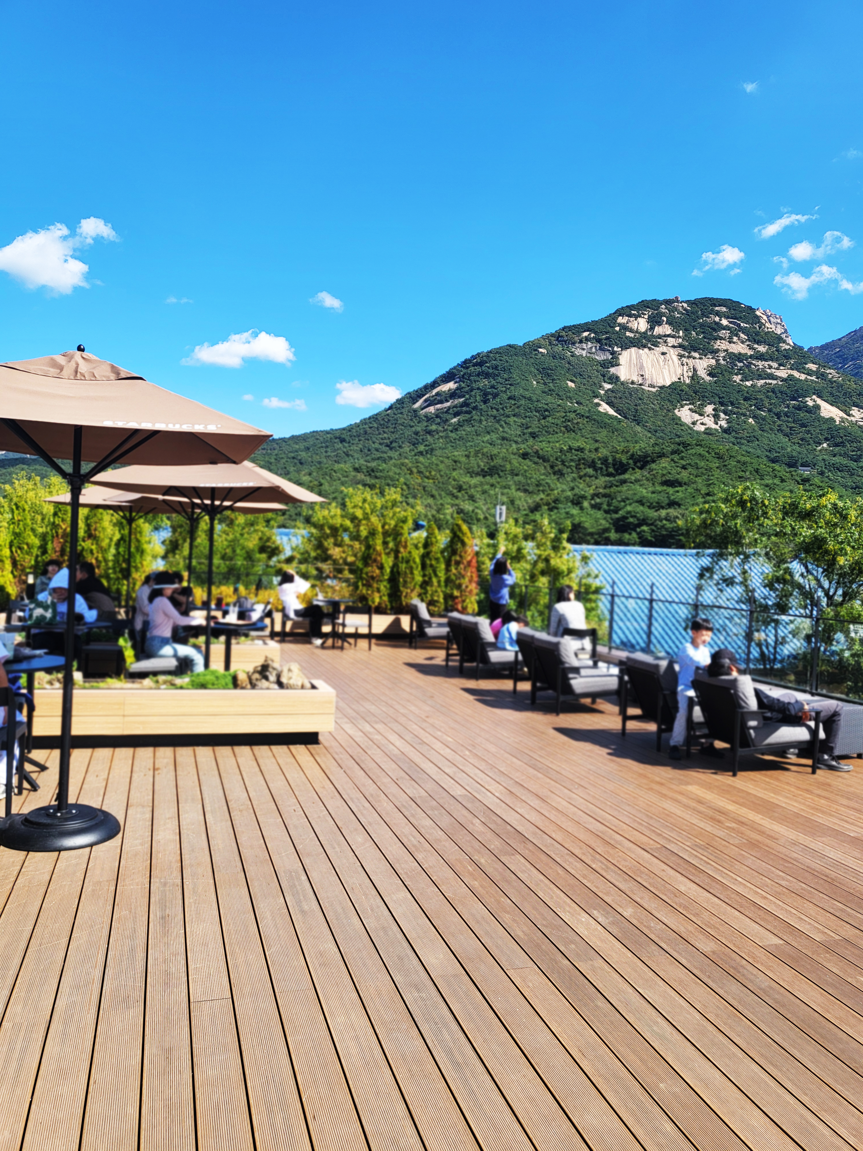 4. 야외 테라스에서 만끽하는 북한산의 풍경 🌅