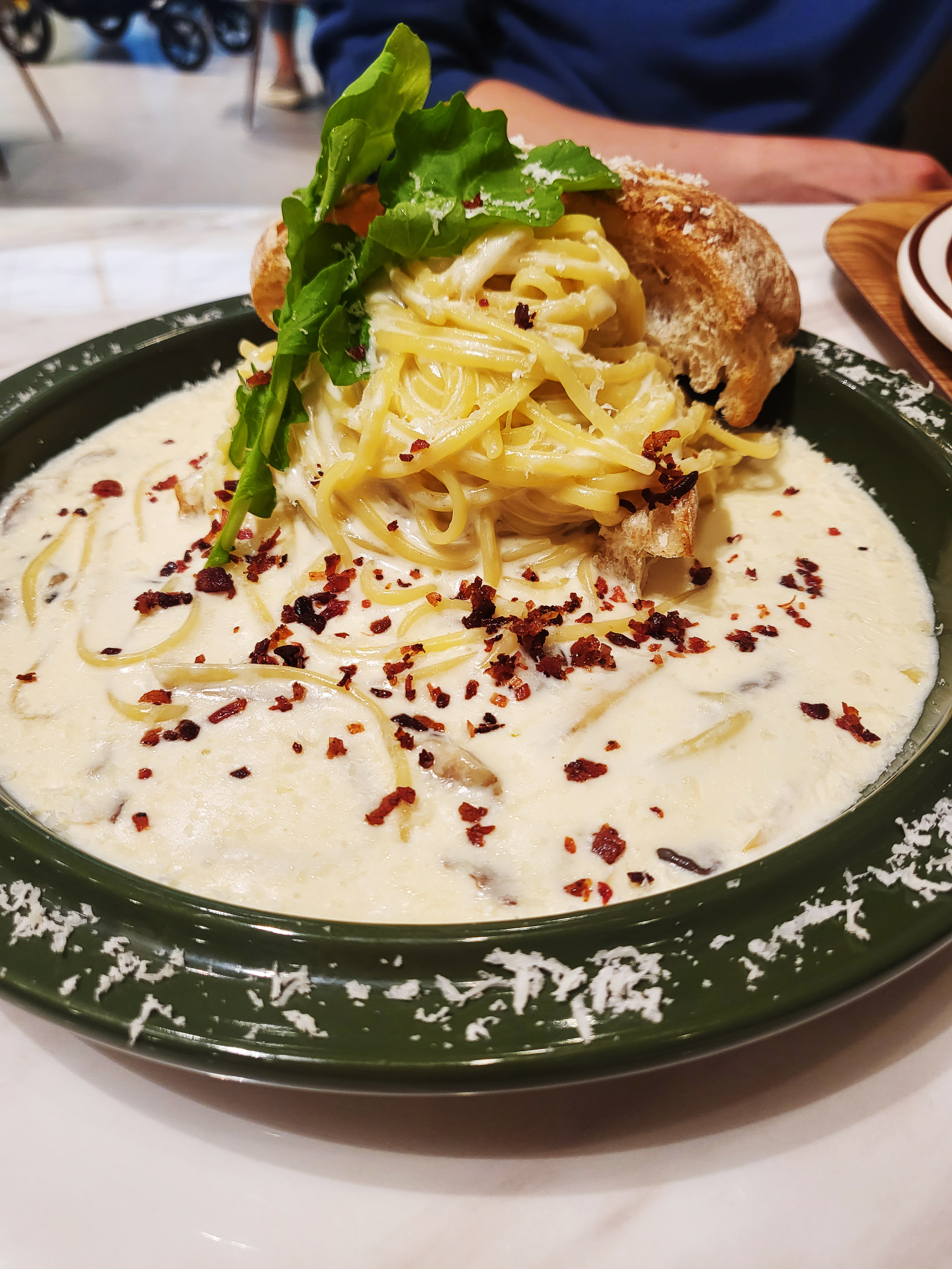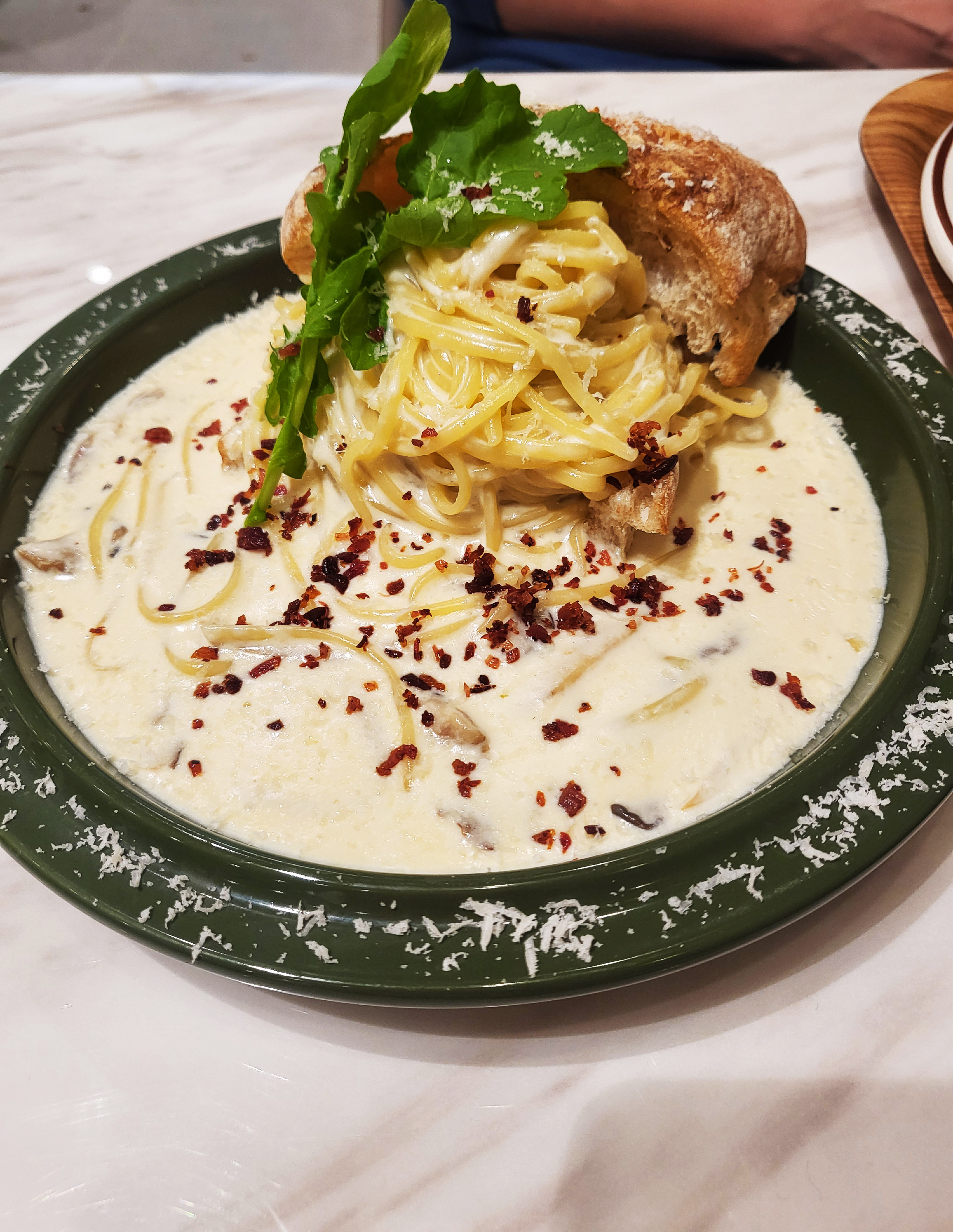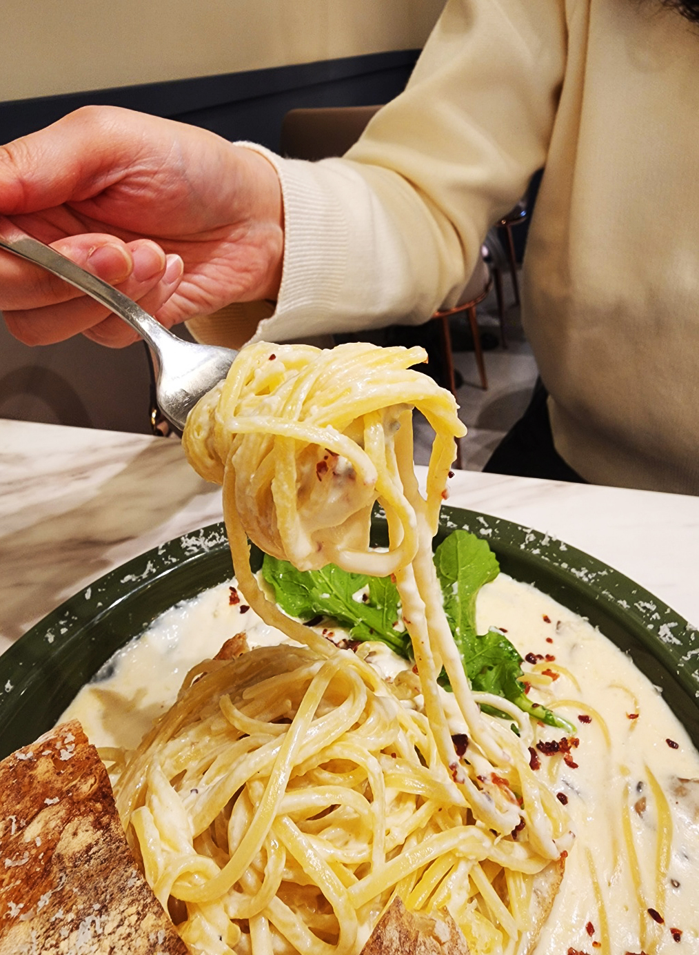 크림 파스타 특유의 묵직한 느낌이 있지만 빵과 함께 먹으니 한층 더 담백하고 균형 잡힌 맛을 느낄 수 있었답니다.
