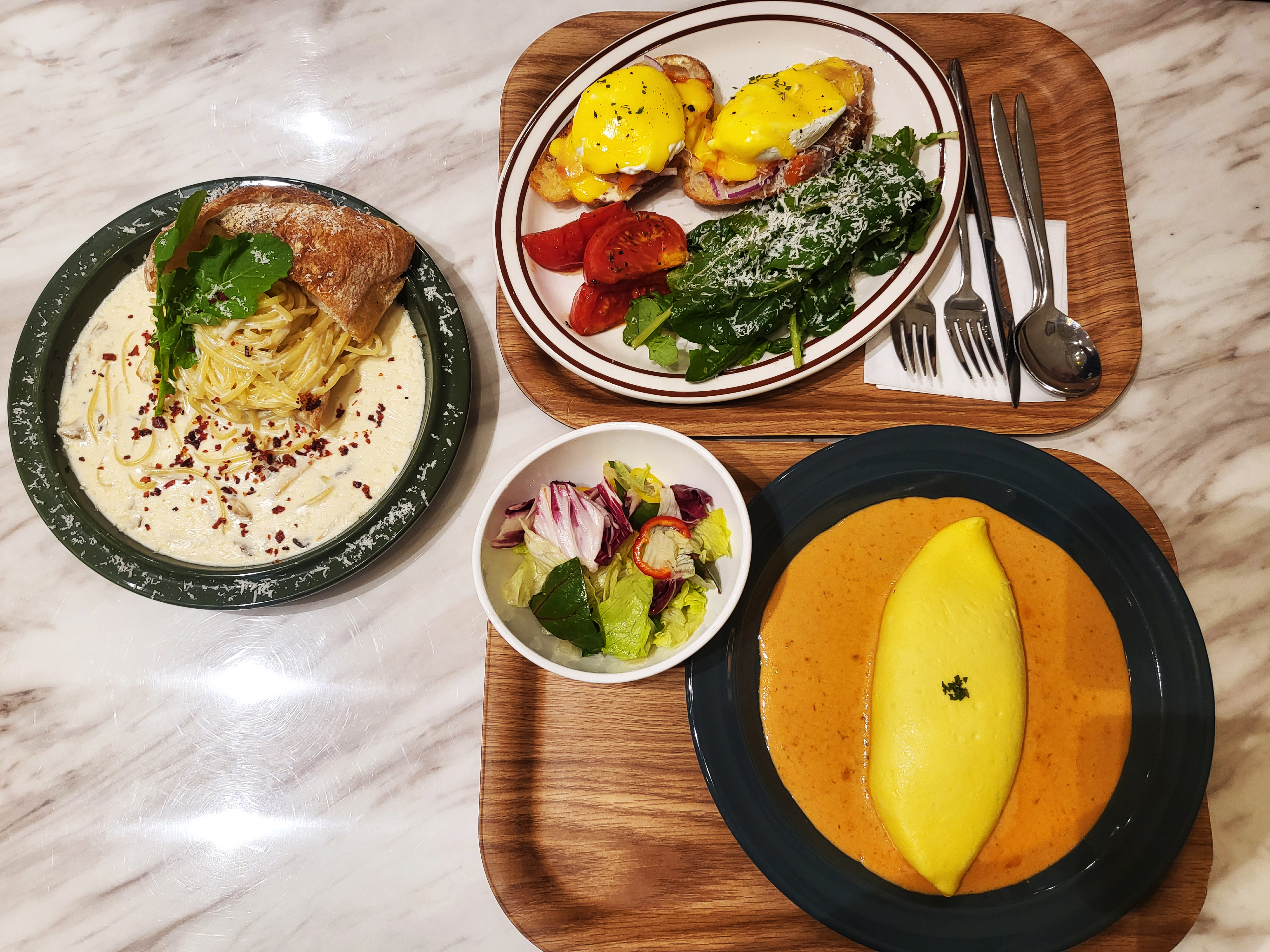 저희는 로제오믈렛, 에그 베네딕트, 빠네 크림 파스타를 주문했어요.