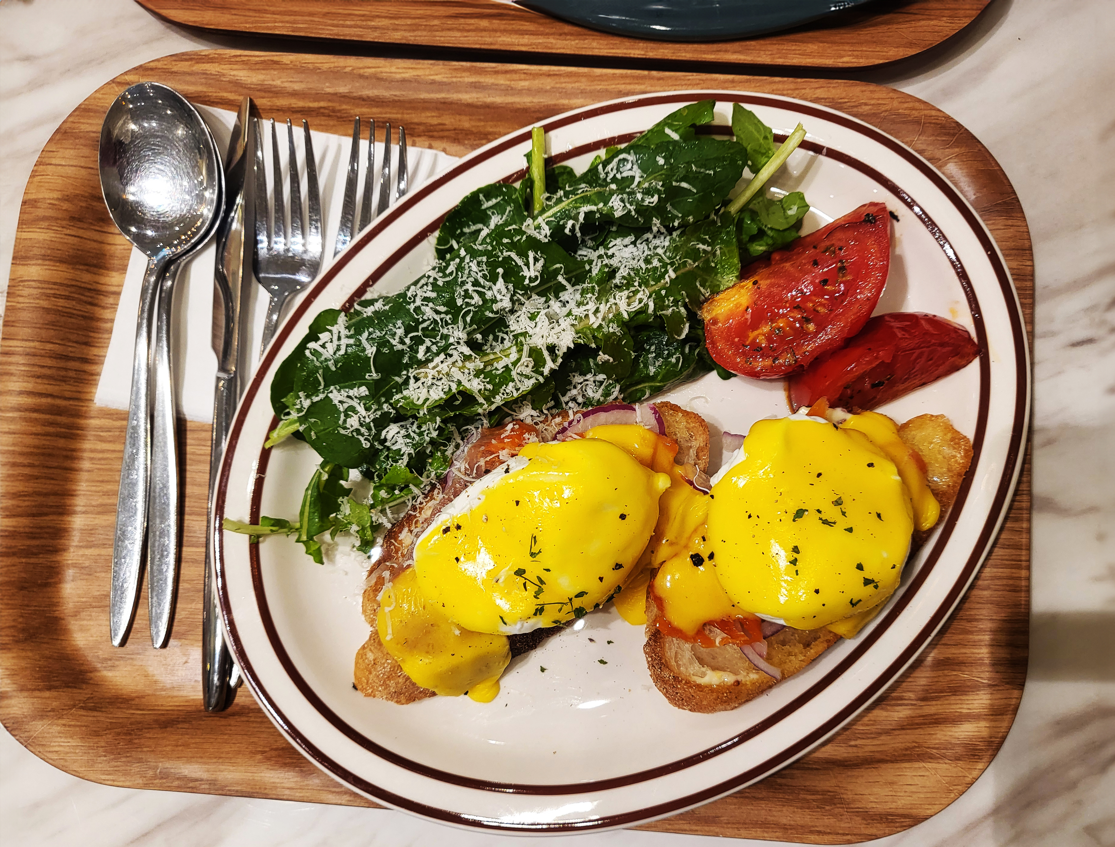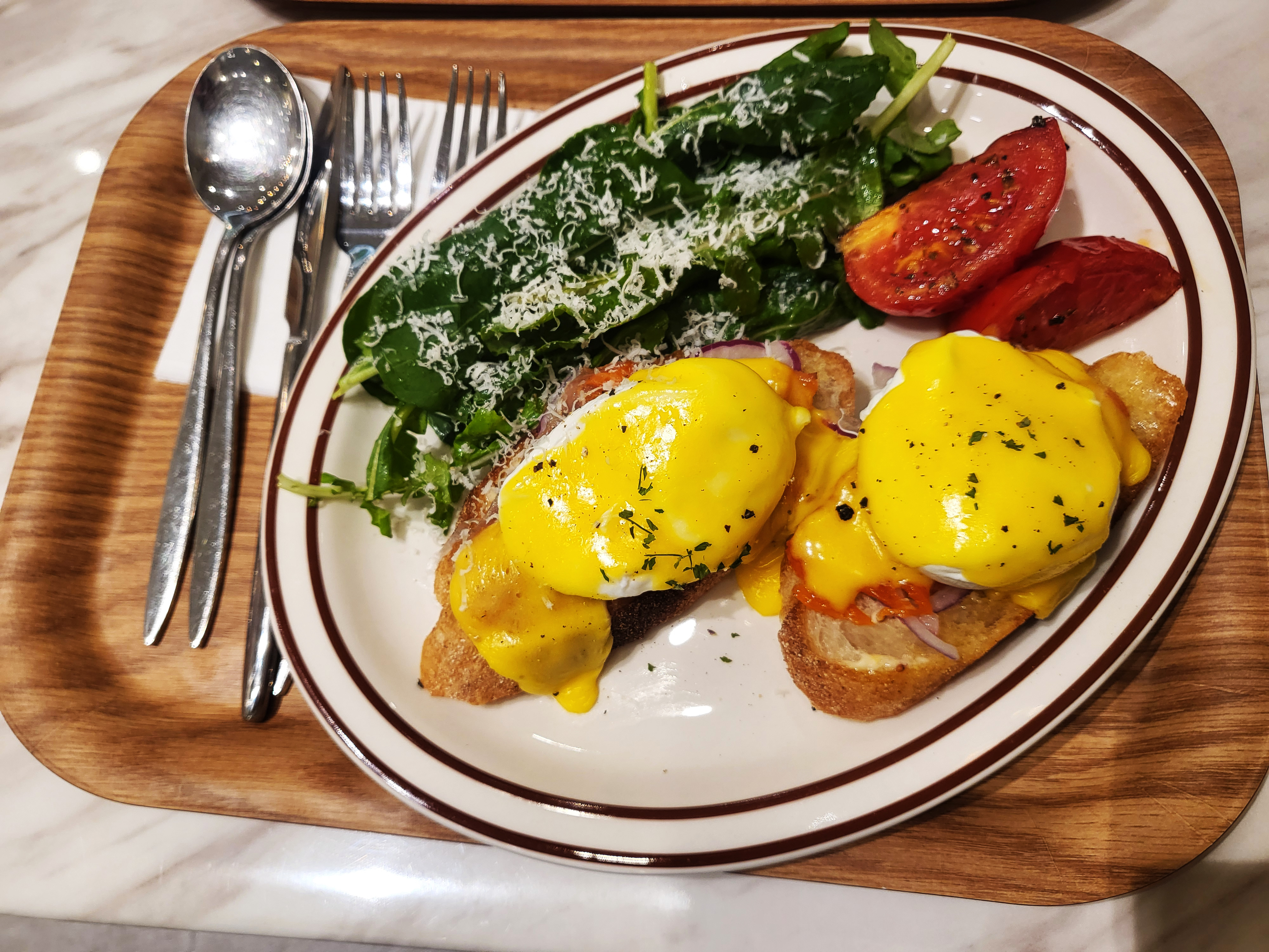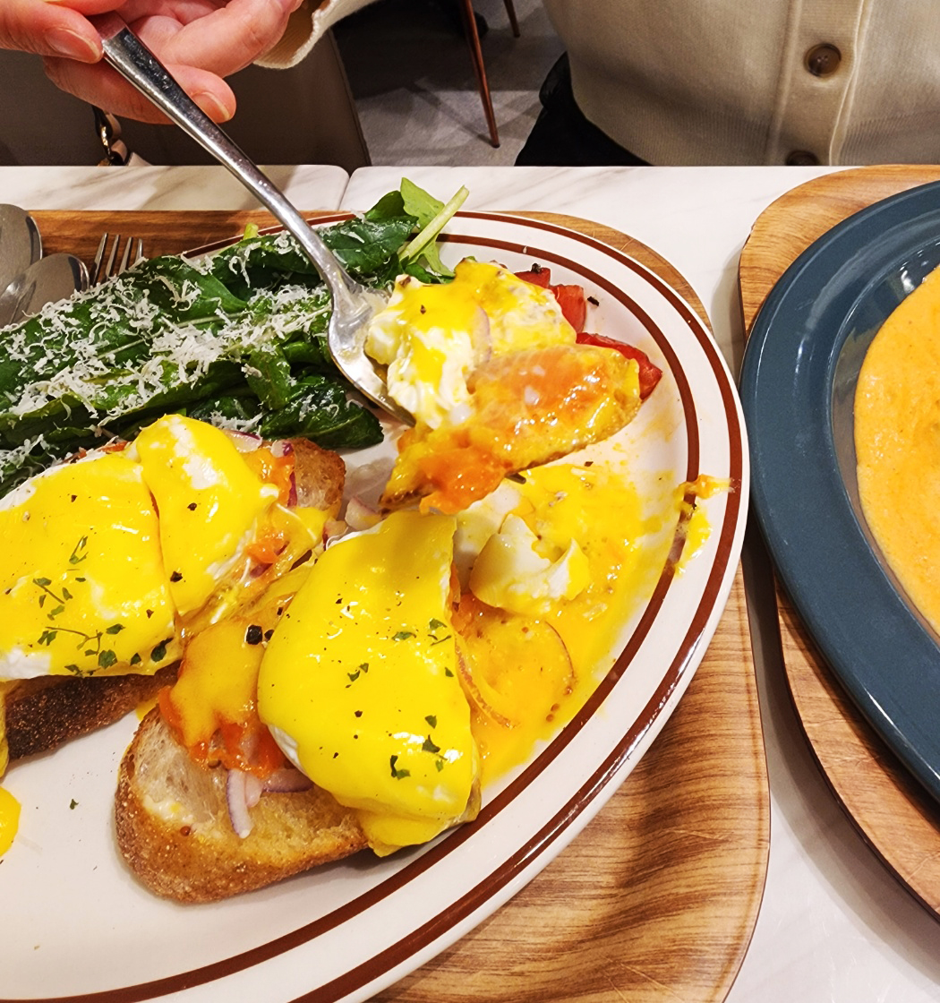 - 에그 베네딕트는 고소한 홀랜다이즈 소스와 신선한 계란, 훈제 연어가 어우러져 아주 만족스러웠어요. 🍳🐟