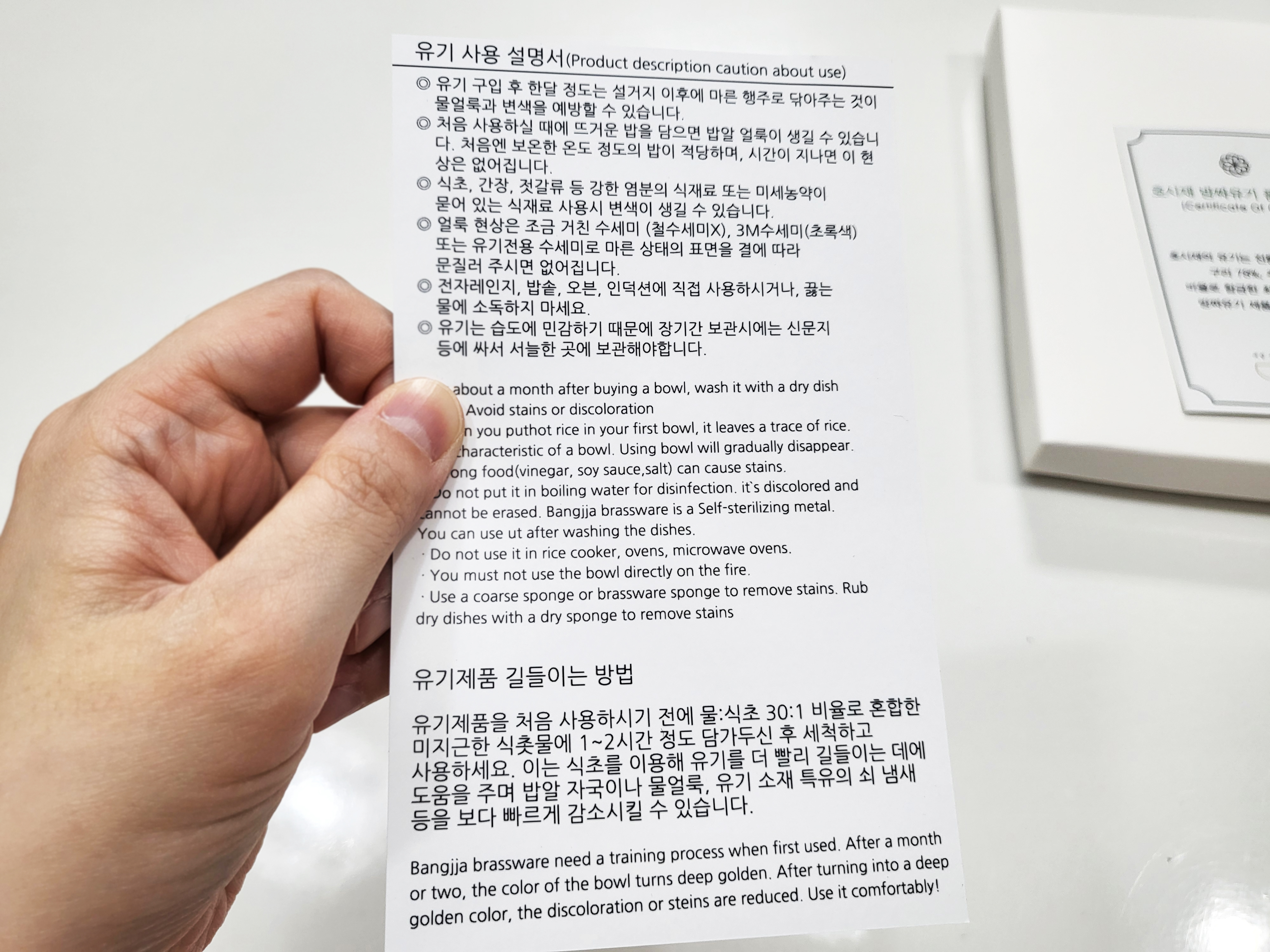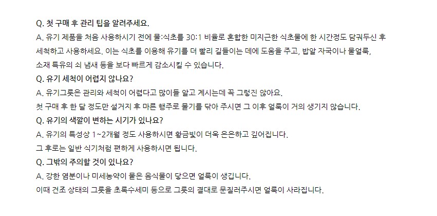 2. 세척 팁: 사용 후 첫 한 달 동안은 설거지 후 마른 행주로 물기를 잘 닦아주는 게 중요하다고 해요. 끓는 물로 소독하면 방짜유기에는 적합하지 않으니 주의해야겠더라고요.