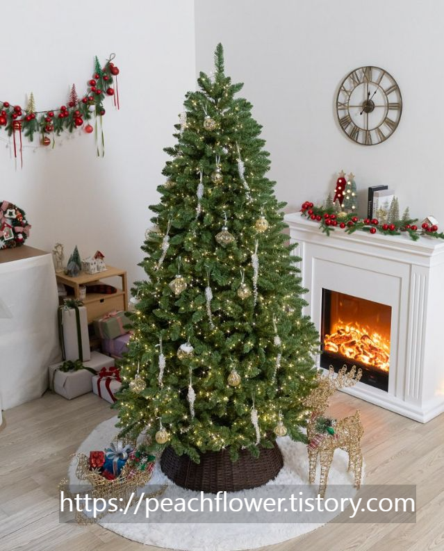 세 번째는 벽난로와 푸른 크리스마스 트리가 등장한 사진이에요.