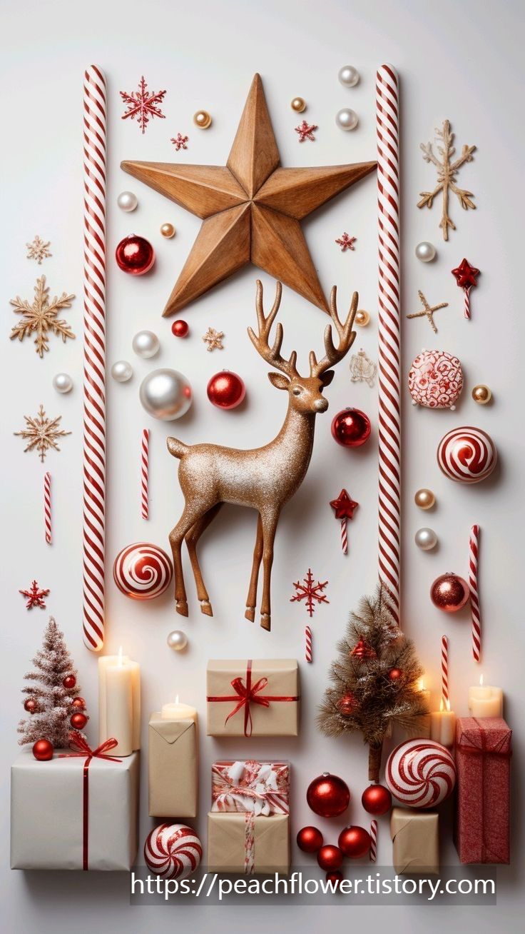 두 번째는 벽에 사슴 장식, 선물 상자, 캔디케인을 배열한 사진을 일러스트로 바꿔봤어요.