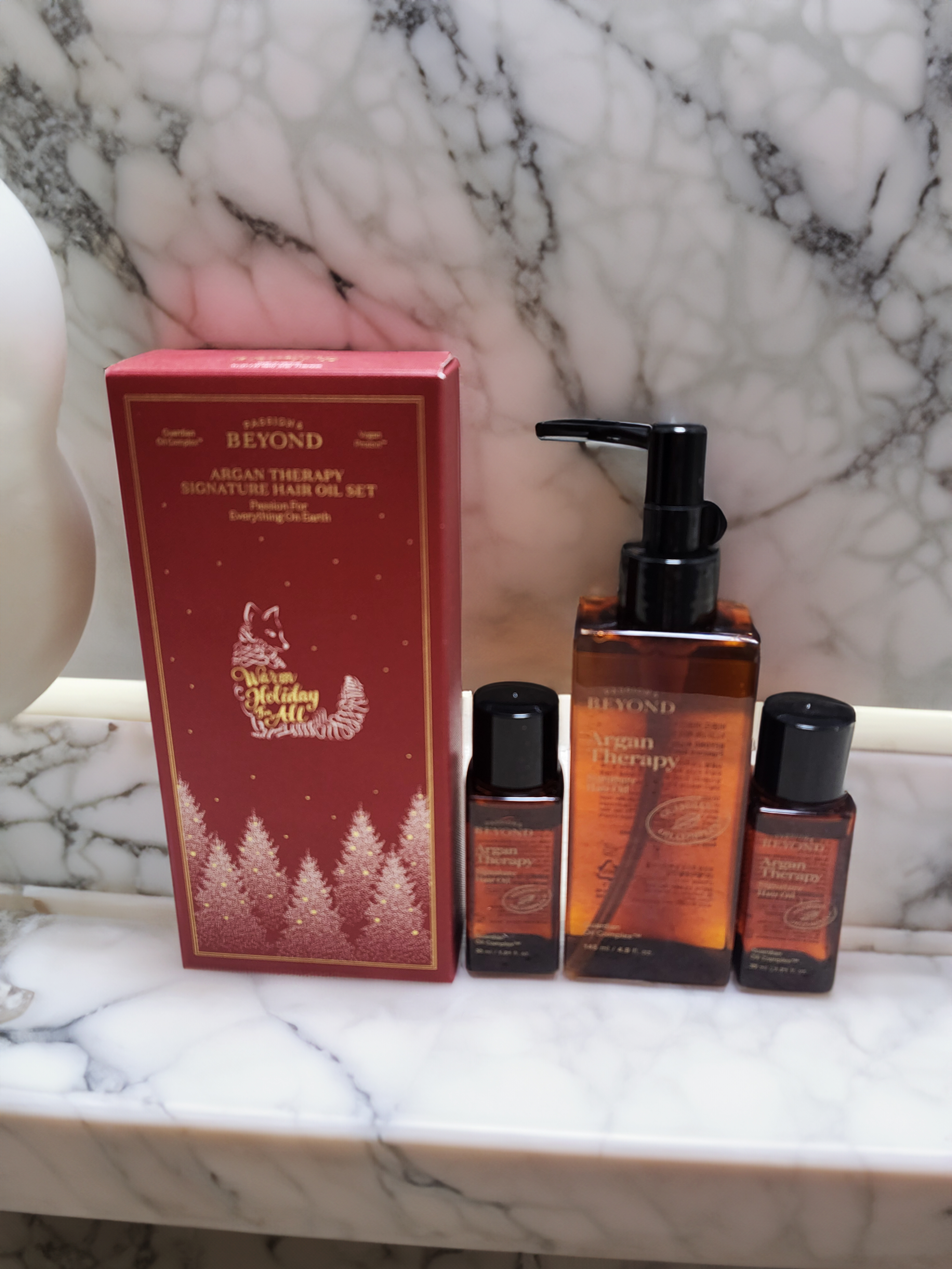 요즘처럼 건조한 겨울철에는 모발 관리가 필수죠! 특히 찬 바람에 푸석해지는 머리카락을 위해 좋은 헤어 오일을 찾고 계시다면, 비욘드 아르간 테라피 시그니처 헤어 오일을 추천드려요. 이 제품은 홀리데이 에디션 기획세트로, 포장부터 겨울 분위기를 물씬 느낄 수 있어 더욱 특별하답니다. 🎄