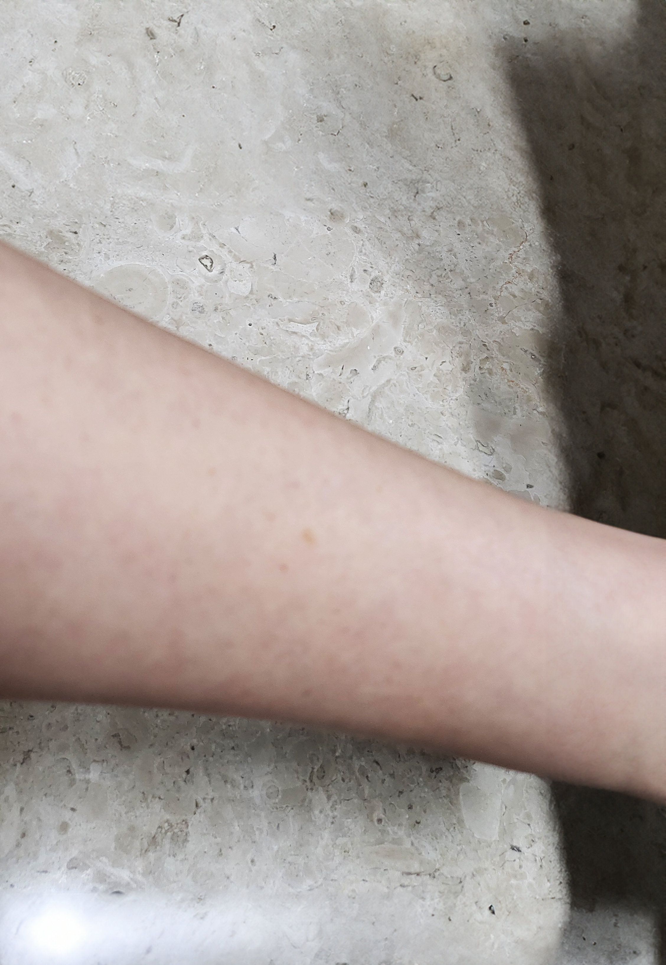 팔에도 발라봤는데, 역시 톤업 효과가 확실했어요. 들뜨지 않고 촉촉하게 잘 밀착되어 만족스러웠습니다.