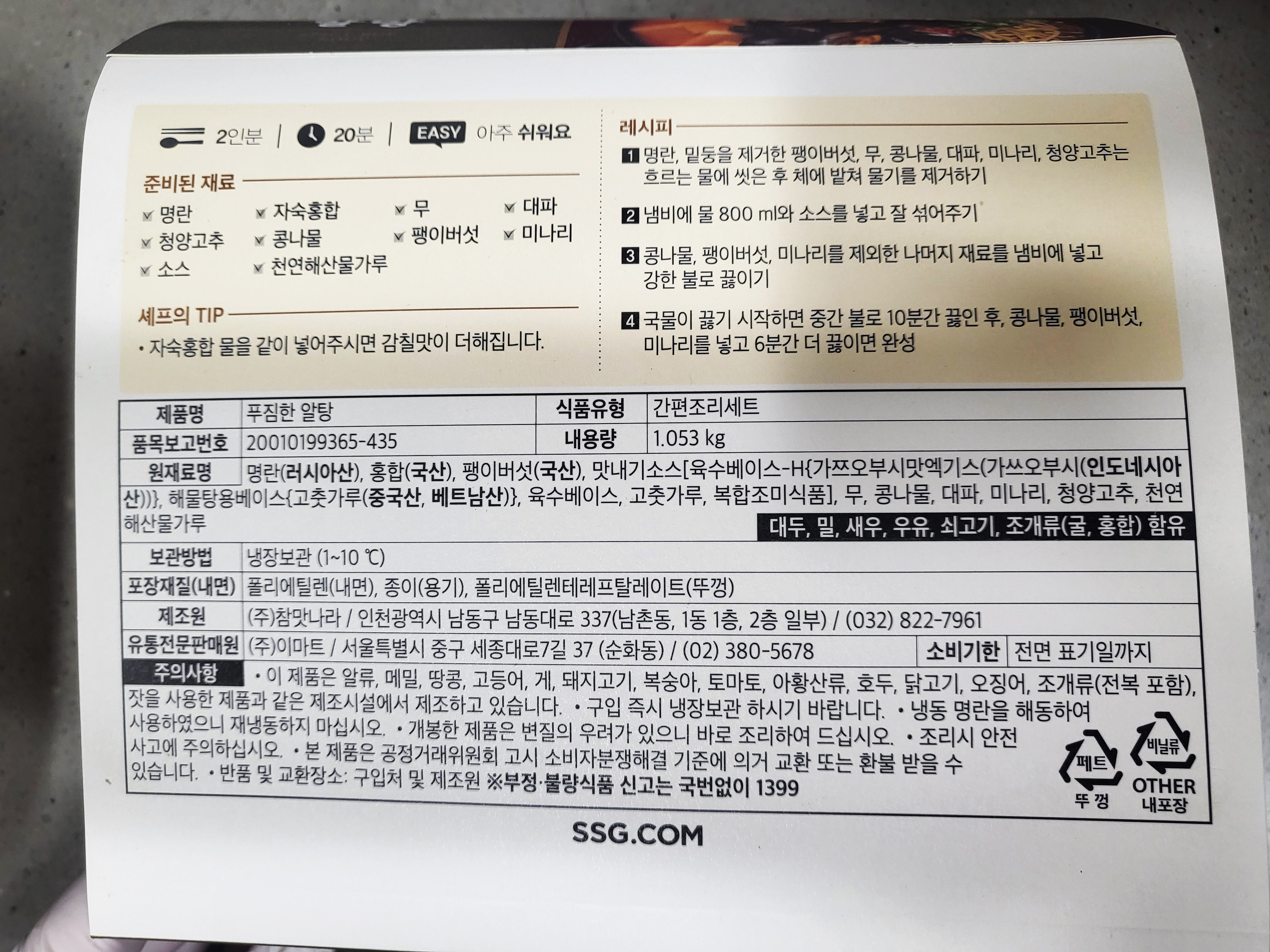 제품명: 피코크 알탕 밀키트
