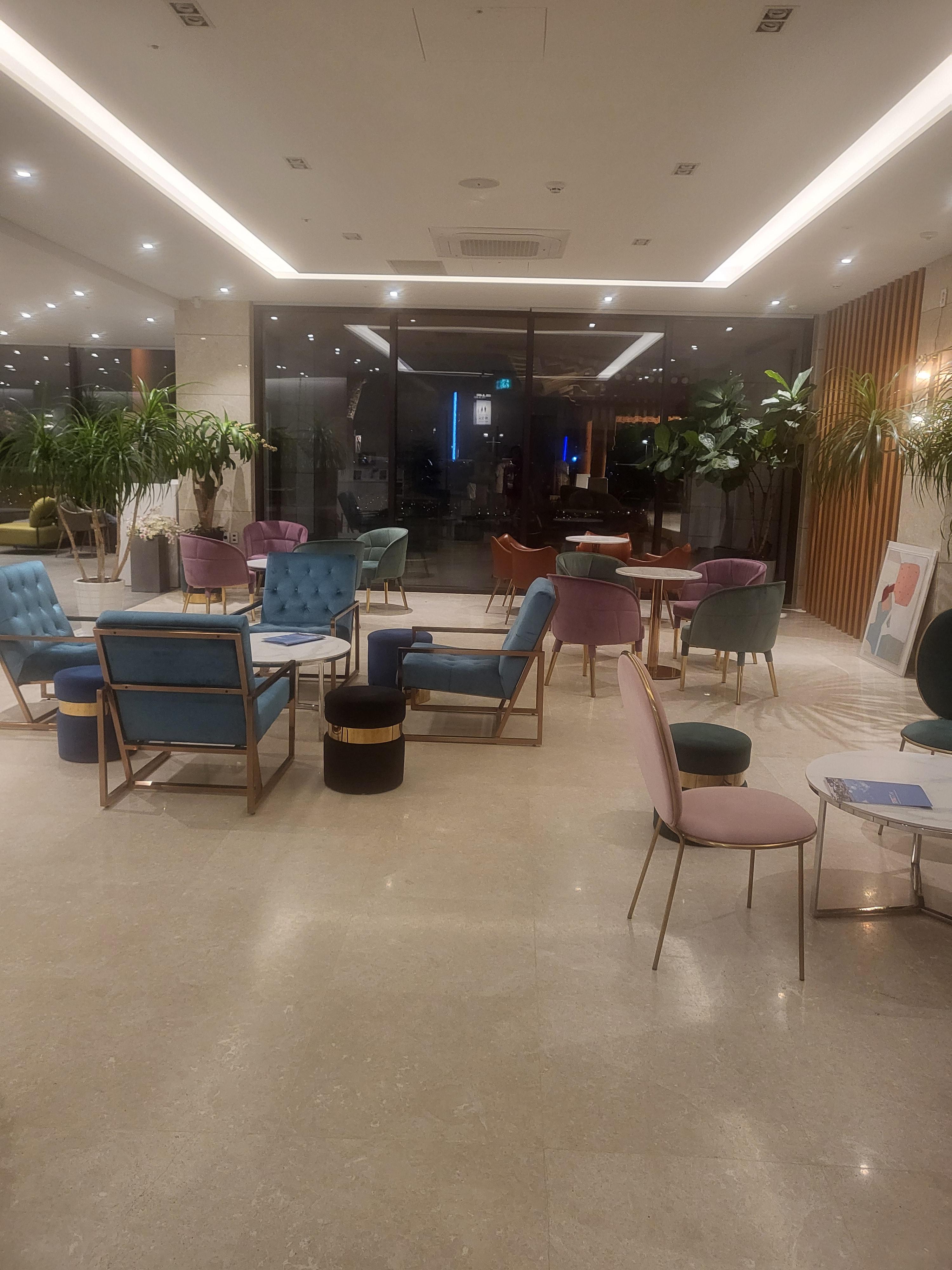 고기를 다 먹고 나서 1층 카페로 이동했어요. 카페는 갤러리 같은 분위기라 식사 후 여유롭게 커피 한 잔 하기에 딱 좋은 곳이었어요. 저희는 아메리카노와 쑥라떼를 주문했는데, 쑥라떼의 진한 쑥 향이 정말 인상적이었어요. 🌿☕