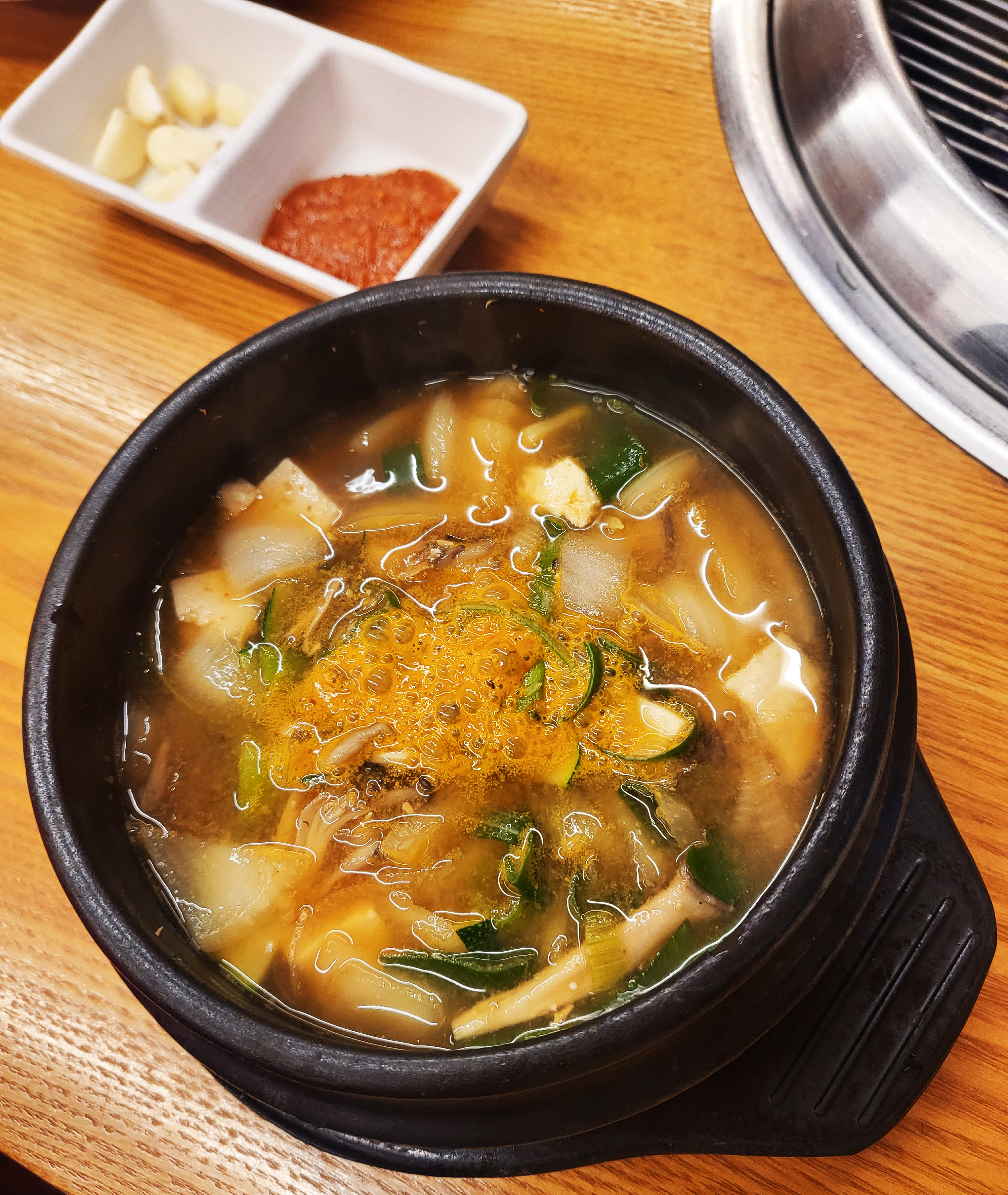 된장찌개는 적당한 간으로 고기와 함께 먹기 딱 좋았어요.