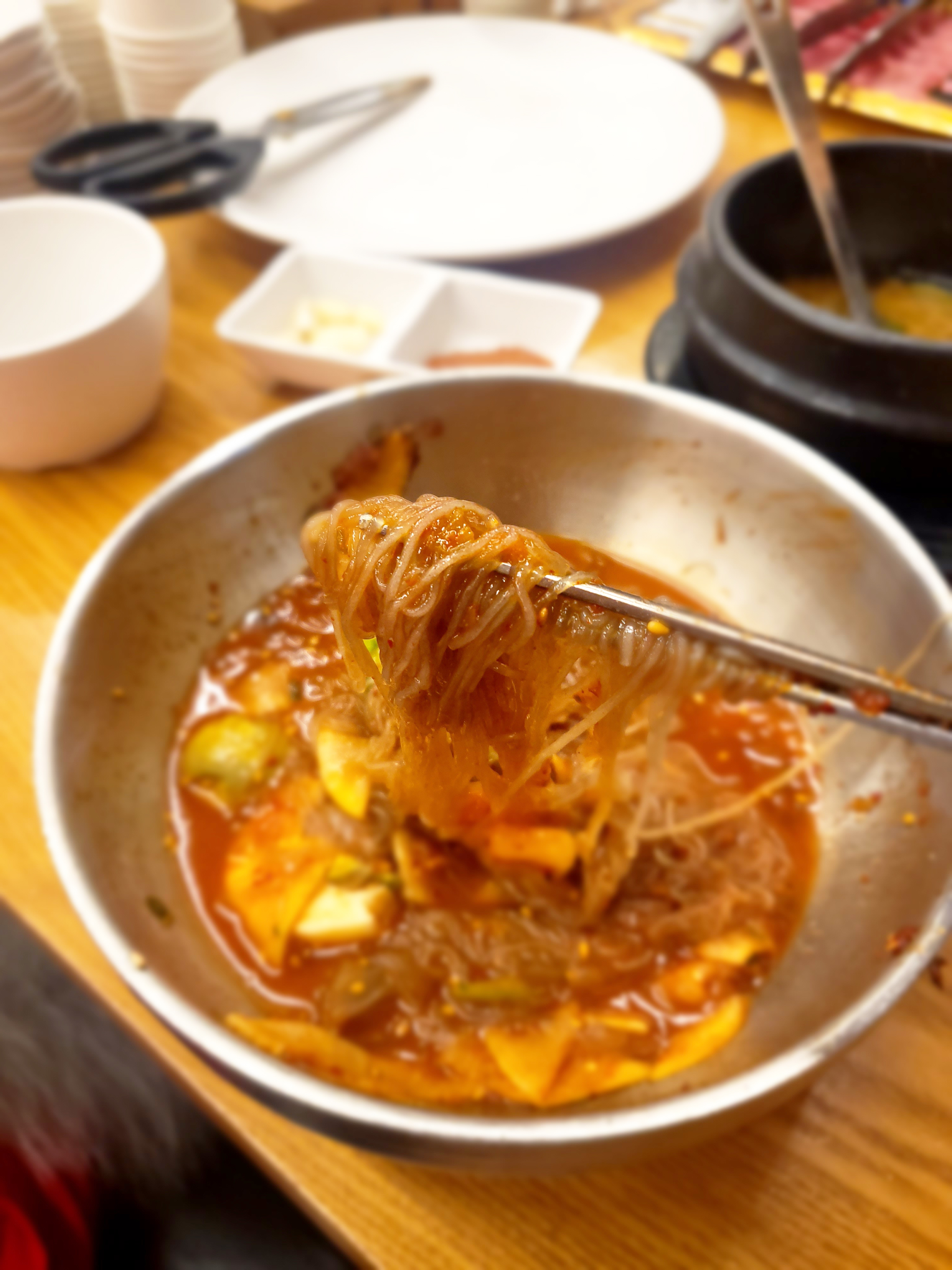 비빔냉면은 새콤달콤한 맛이 고기와 찰떡궁합이었고,