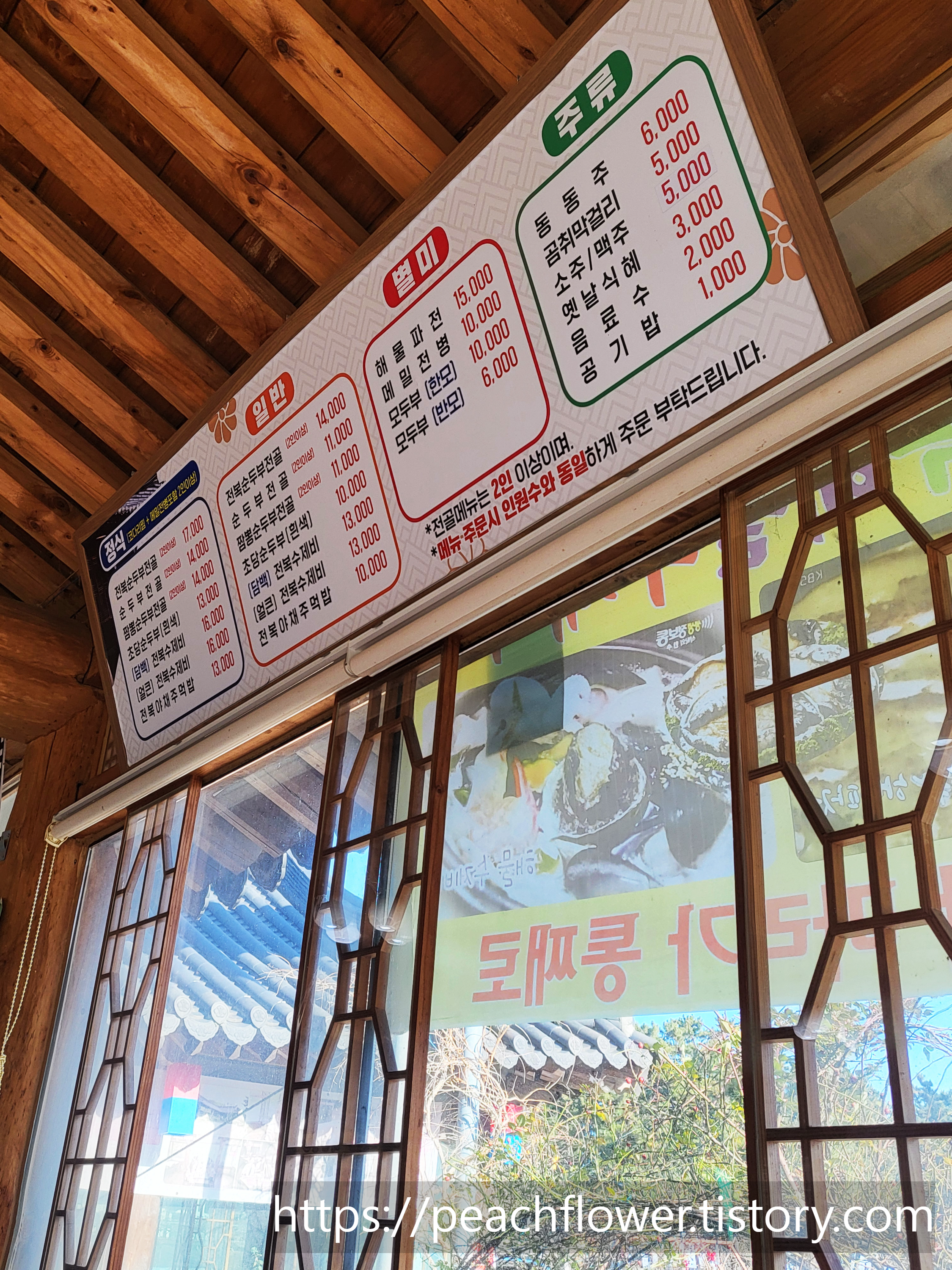 큰기와집의 메뉴는 전복을 중심으로 한 순두부 요리와 해물 요리가 다양하게 준비되어 있어요!