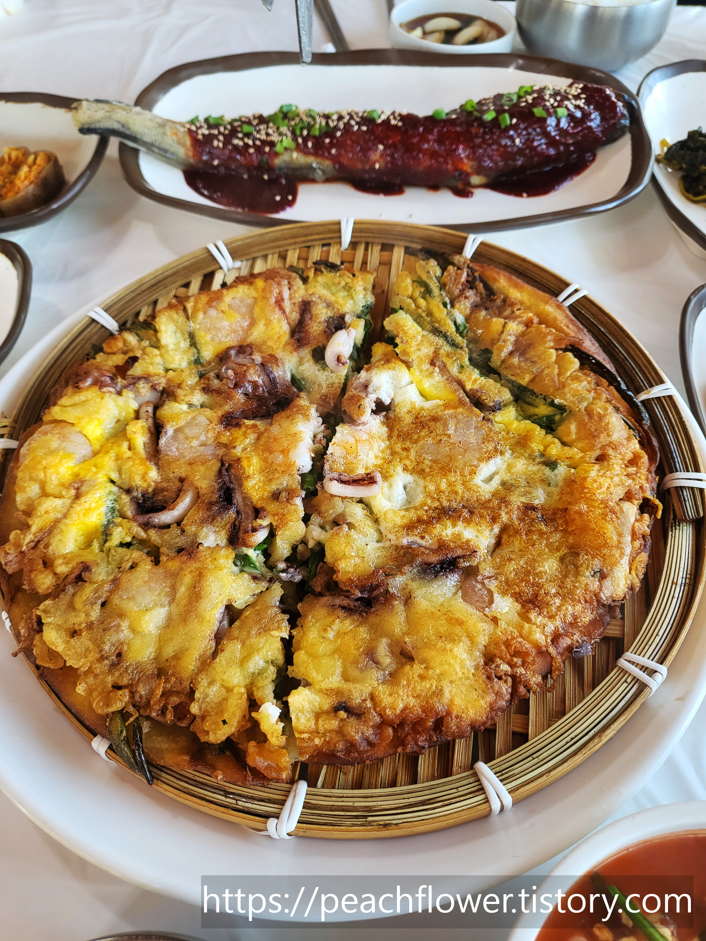 해물파전은 바삭한 식감이 일품인데, 해물의 풍미가 가득해서 한 입 먹을 때마다 고소한 맛이 입 안에 퍼졌어요. 신선한 해산물의 맛이 주를 이루고 있어 정말 맛있었습니다!