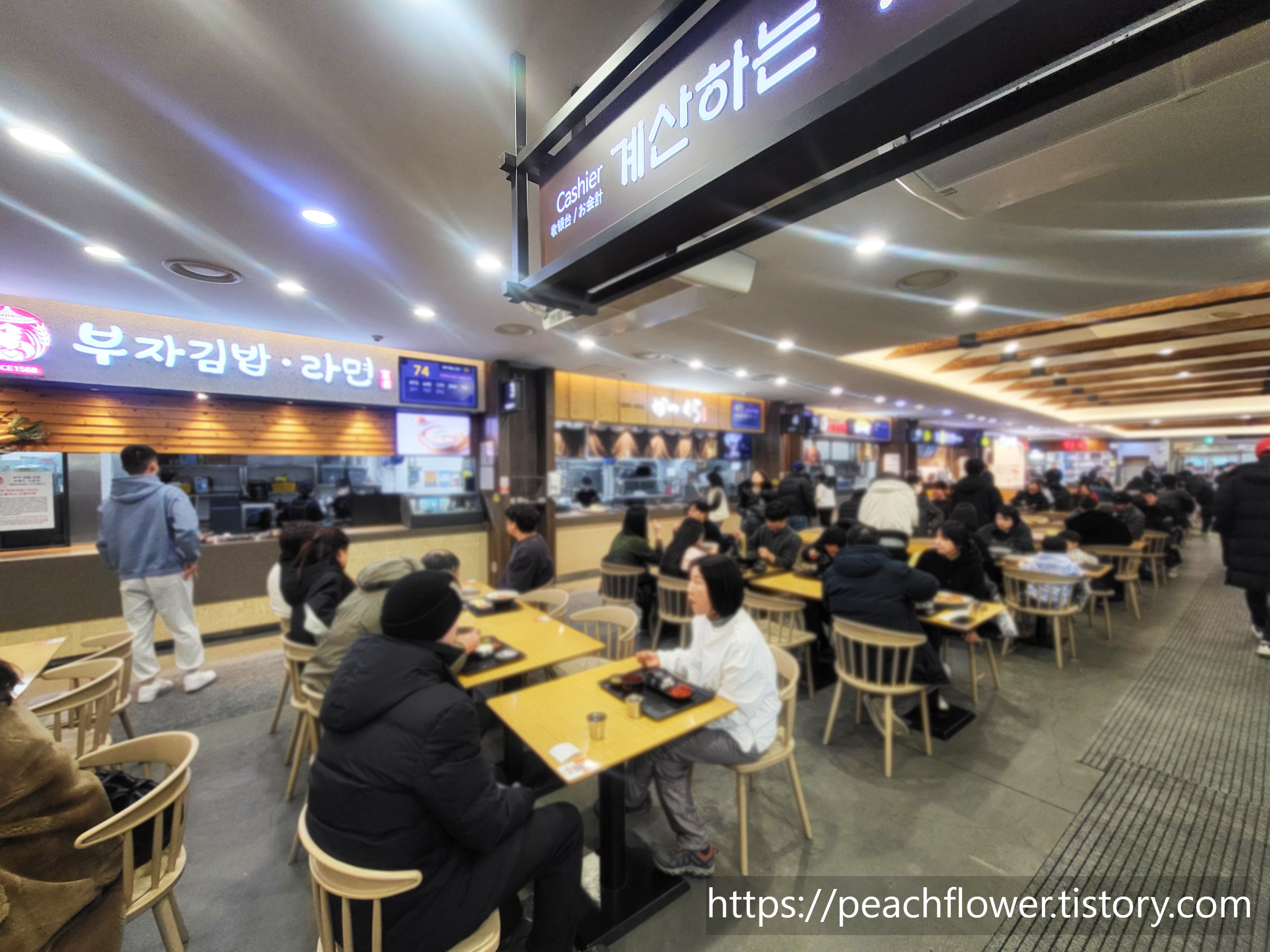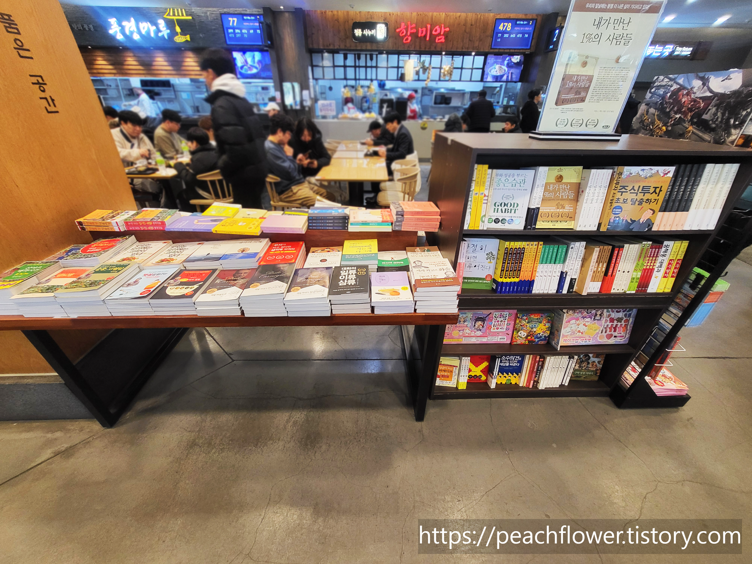 푸드코트 내부에는 김부각이나 황태껍질 같은 간식거리도 있어서 다양한 선택지가 많아요. 그리고 그 한쪽에는 도서도 구입할 수 있는 공간이 있어 독서와 함께 맛있는 음식을 즐기기에 좋았답니다. 📚