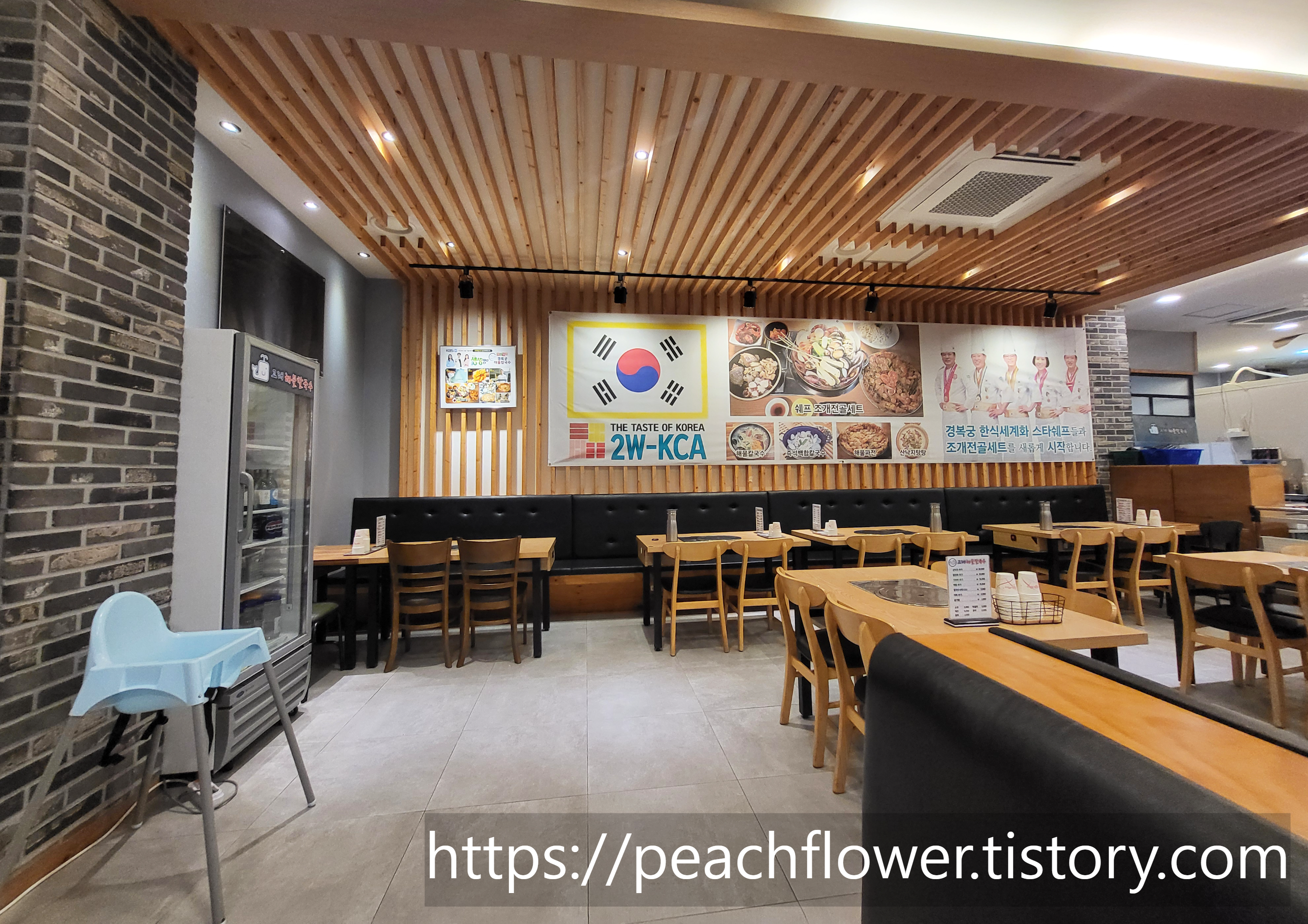 고래해물칼국수는 영종도의 중심지에 있어서 찾아가기 너무 편했고, 내부는 따뜻한 우드 톤의 모던한 인테리어로 꾸며져 있어서 들어가자마자 편안하고 기분 좋은 느낌이었어요✨ 유아 의자도 마련되어 있어서 가족들과 함께 오기에도 좋겠더라고요.