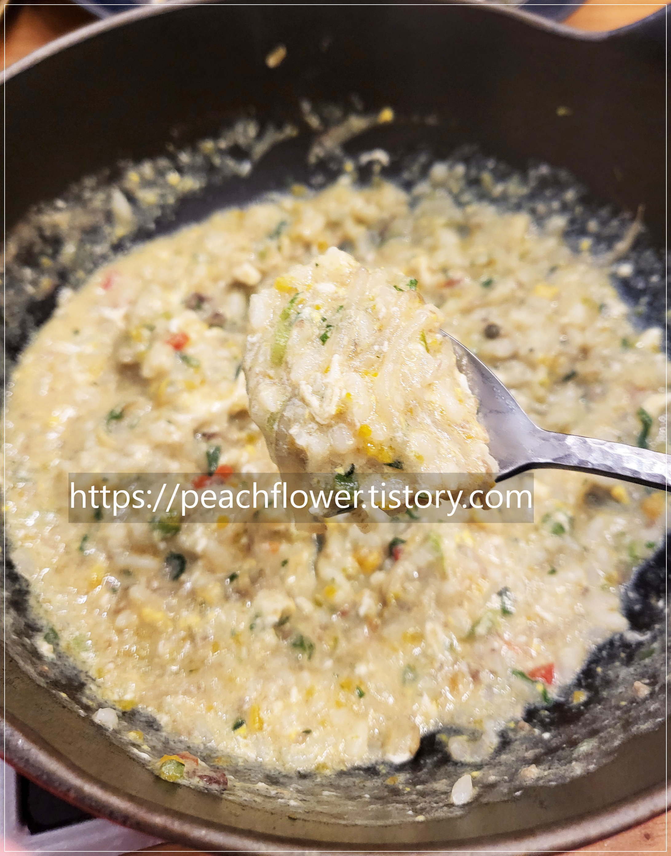 마지막으로 고기와 야채를 다 먹고 나면 계란과 함께 죽을 만들어 주시는데,