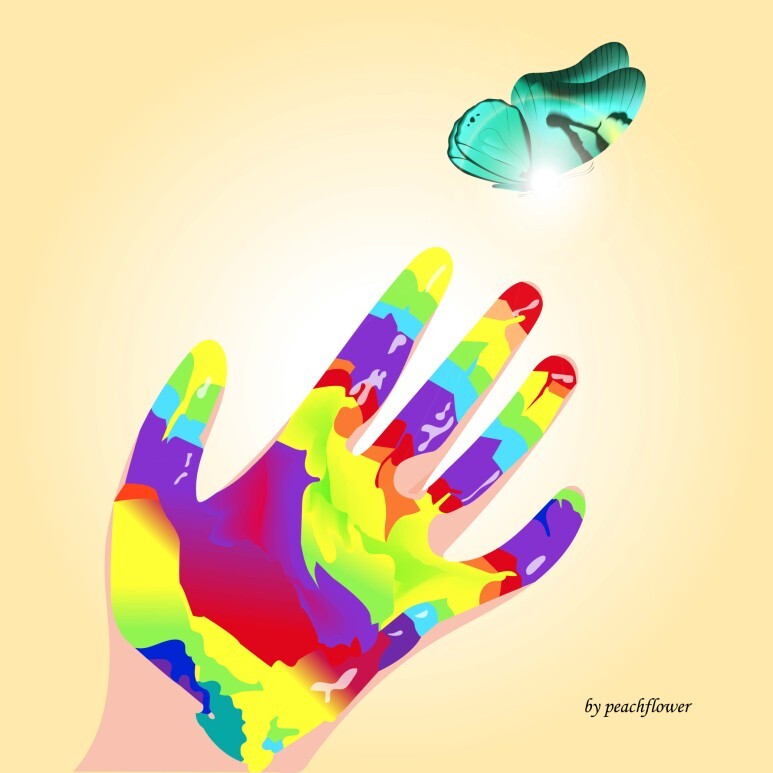 손 윗부분에 나비를 그려보면