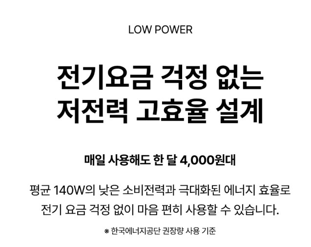 한 달 전기요금이 약 4,000원대라 부담 없어요