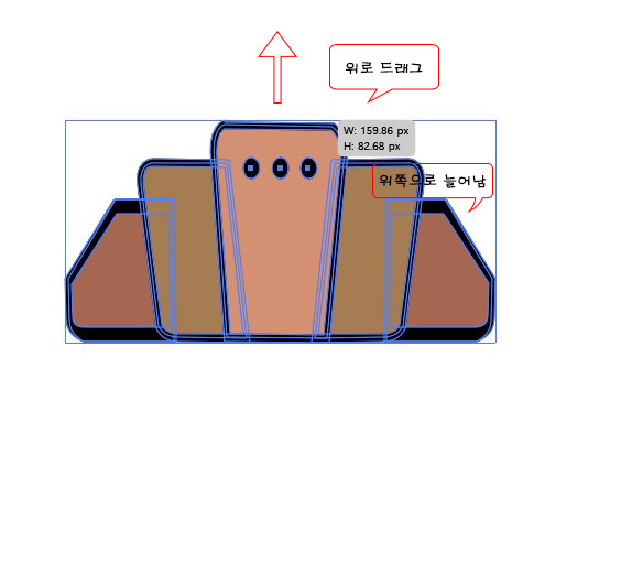 왼쪽 오른쪽 윗부분 크기를 수정합니다.
