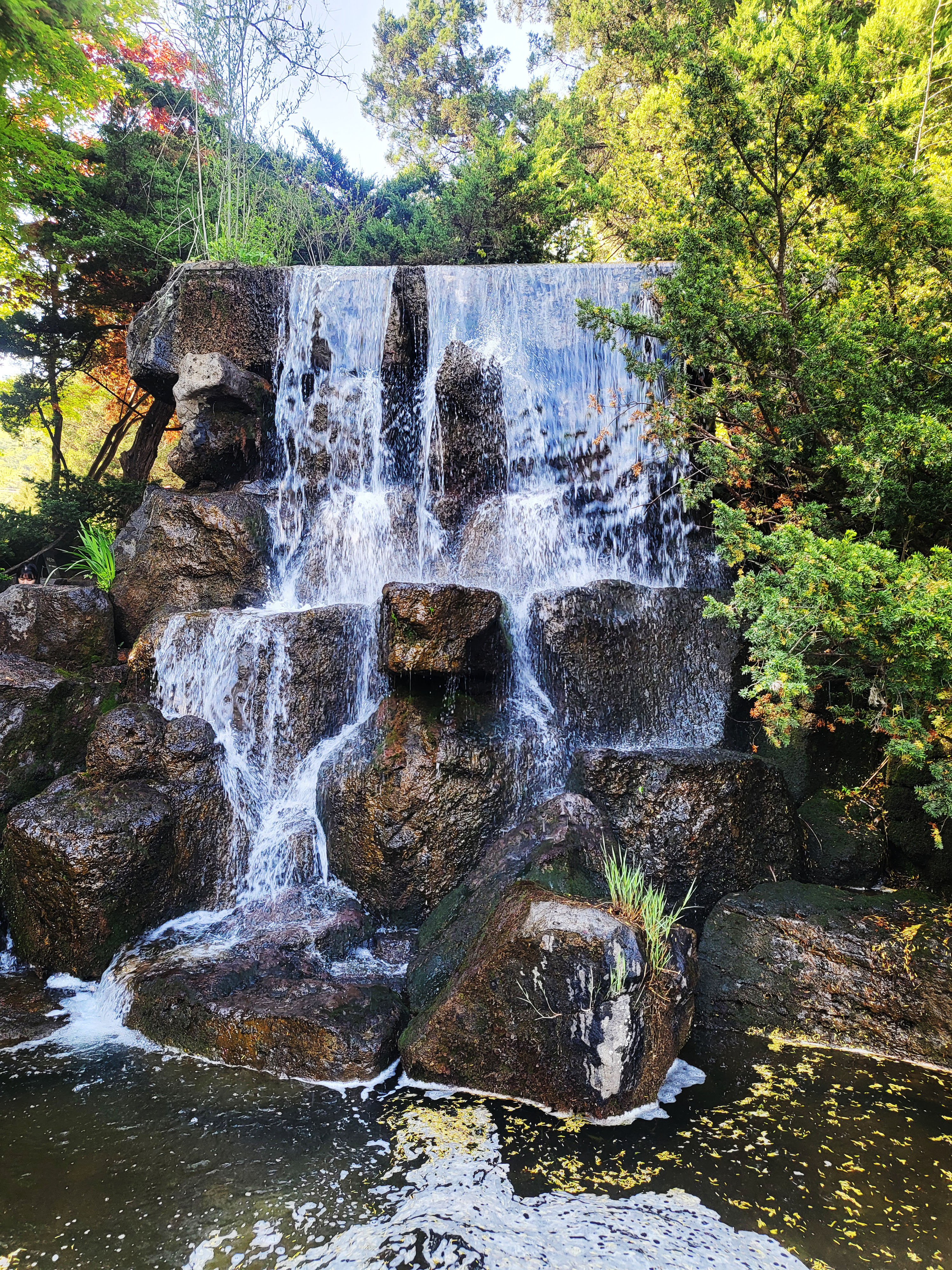 폭포 아래 맑은 연못에는 물 위로