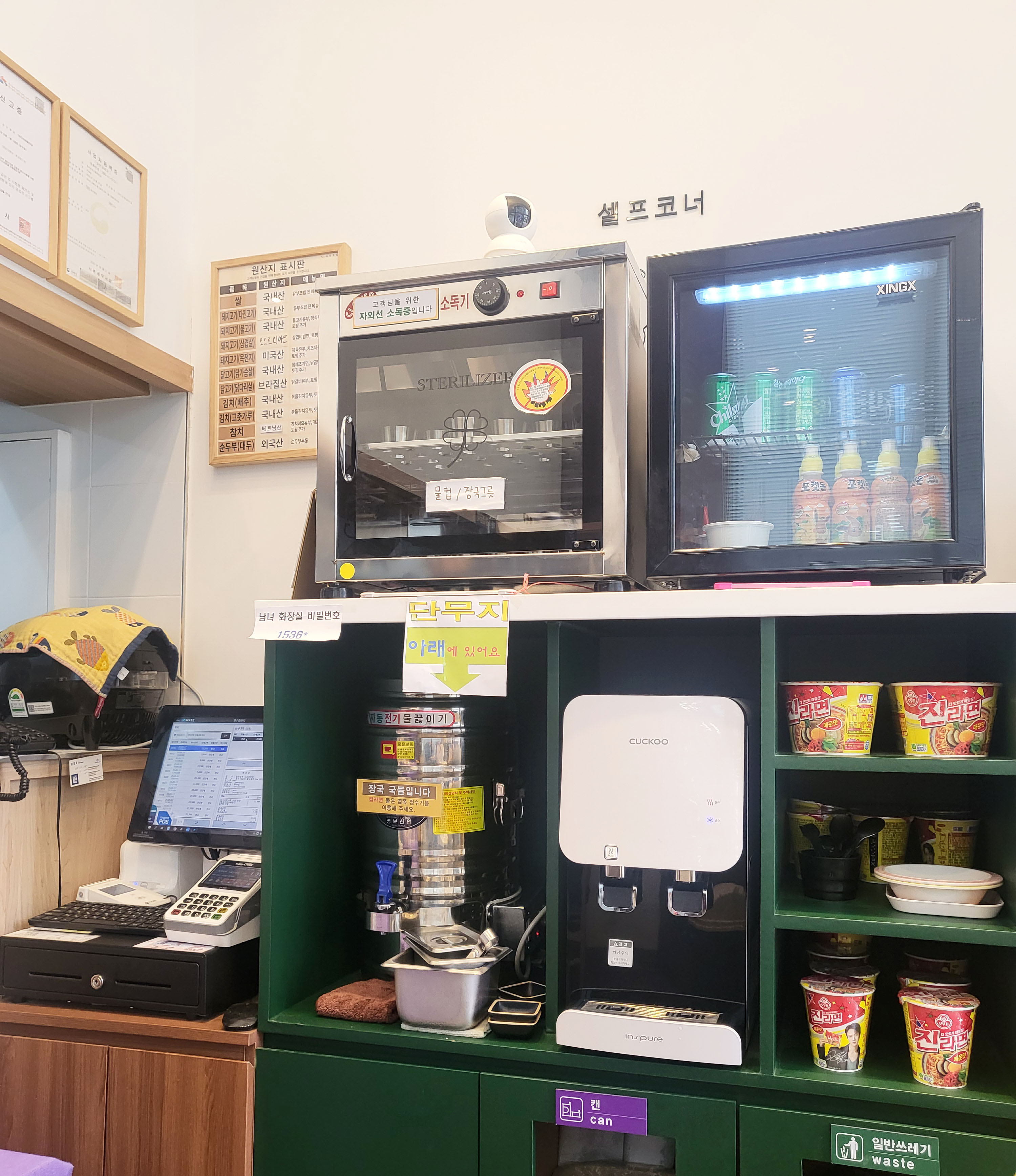 장국 국물은 셀프로 가져다 먹을 수 있고