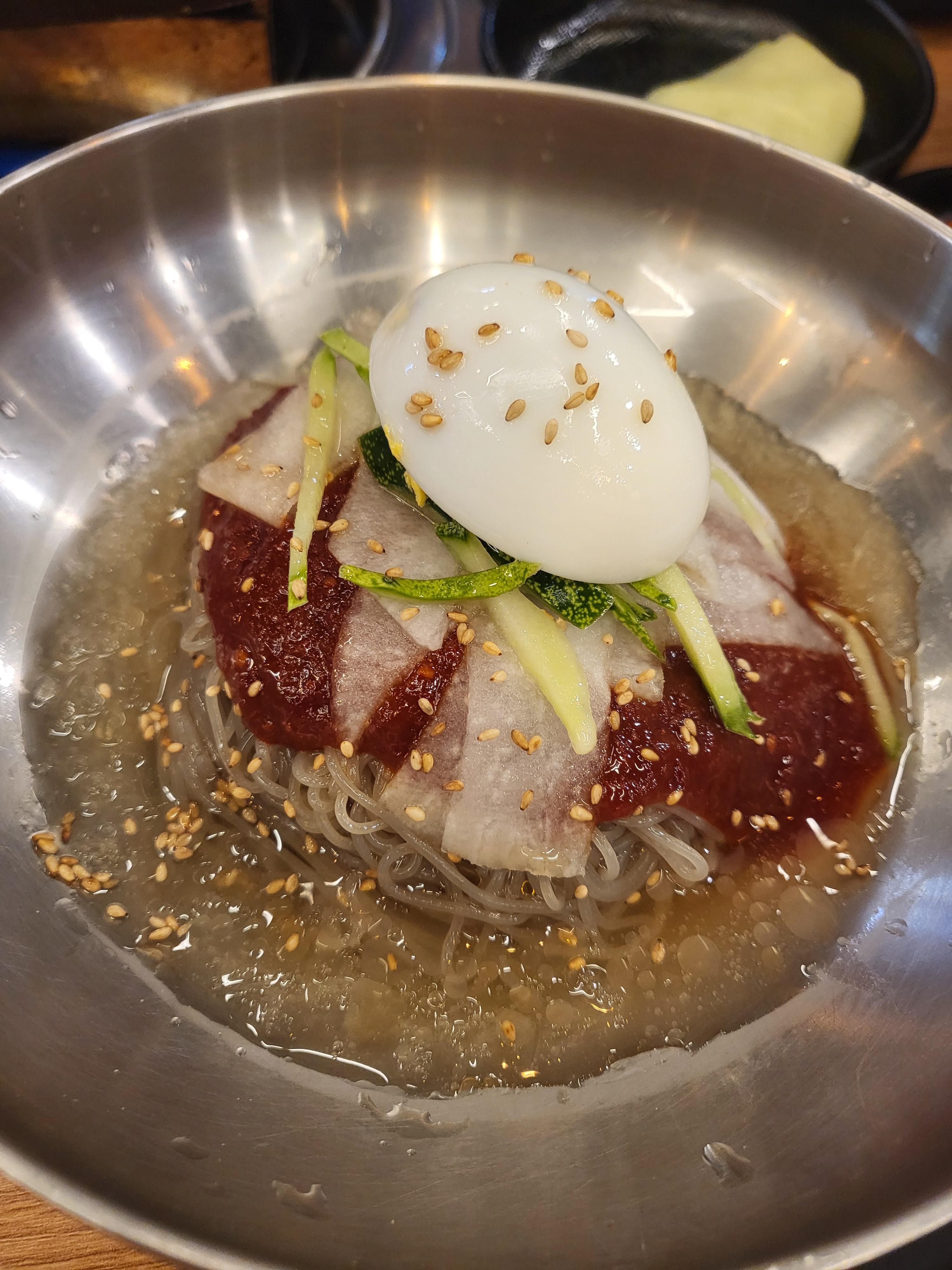 사이드로 시킨 비빔냉면과 물냉면은