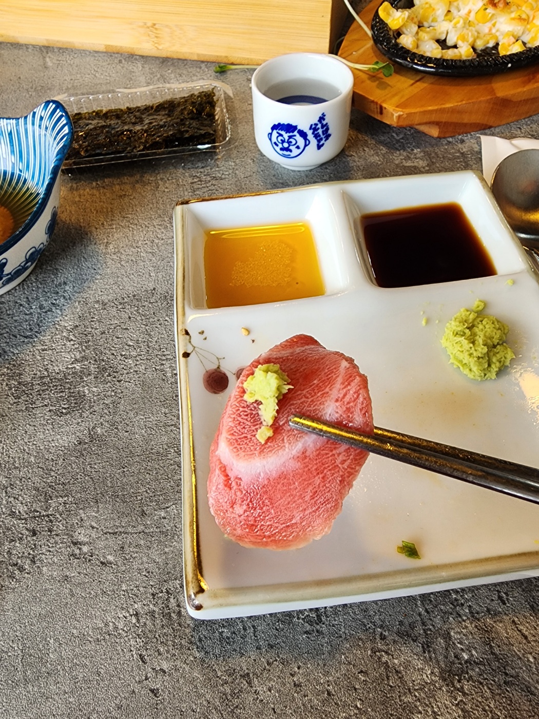 참치회 위에 와사비를 살짝 올려