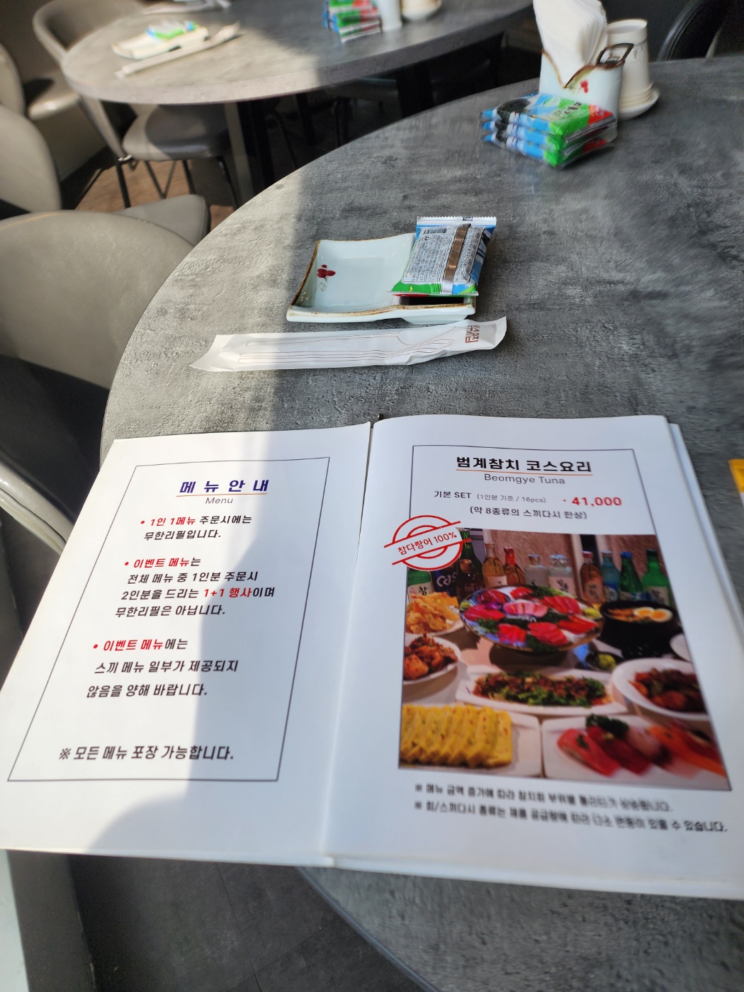 범계참치는 1인 1메뉴 주문 시