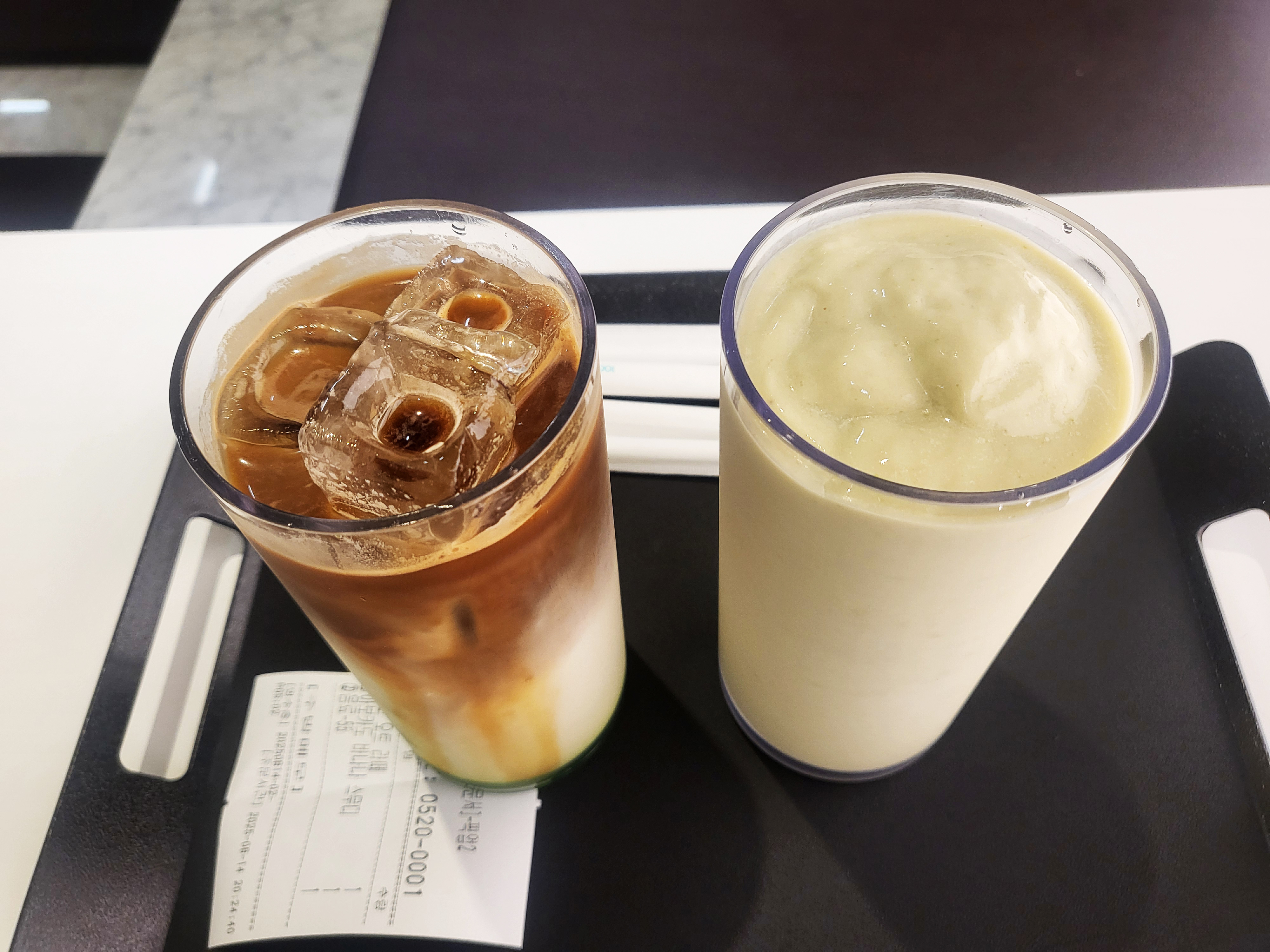 이번에 주문한 음료는 오트라떼와 아보카도바나나 스무디였어요.