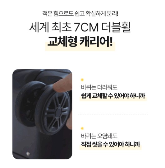 바로 탈부착이 가능한 7cm 더블 휠이에요🛞
