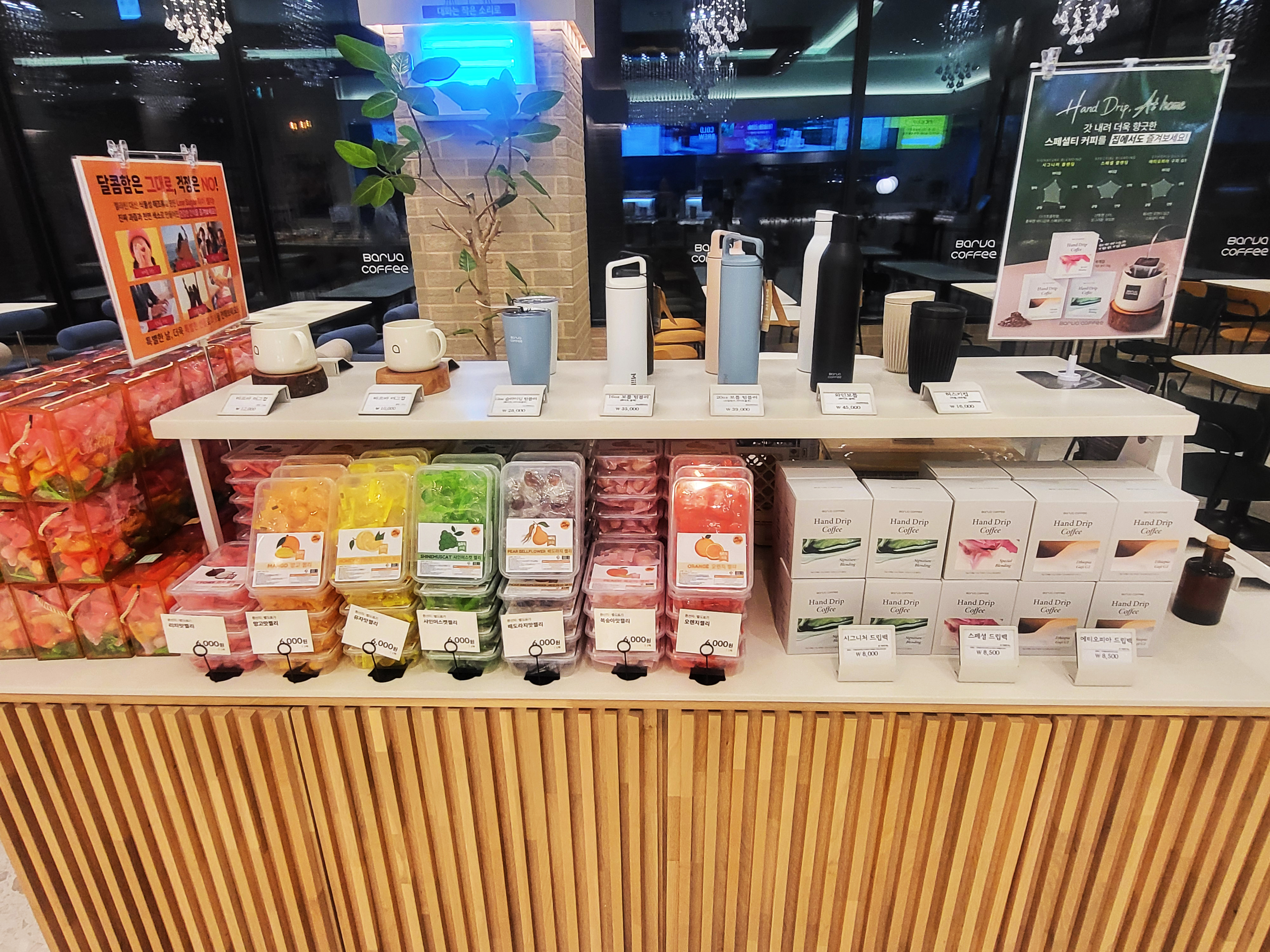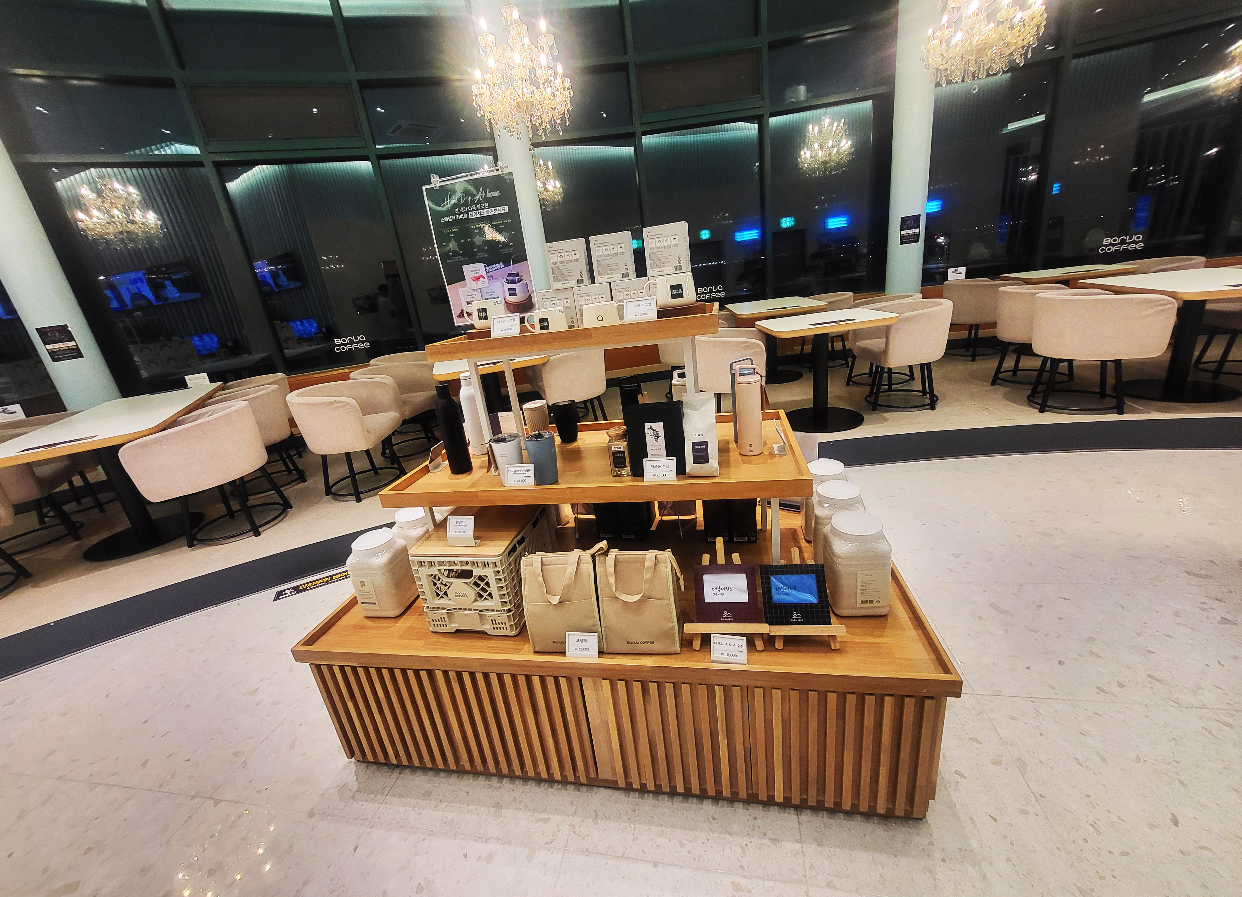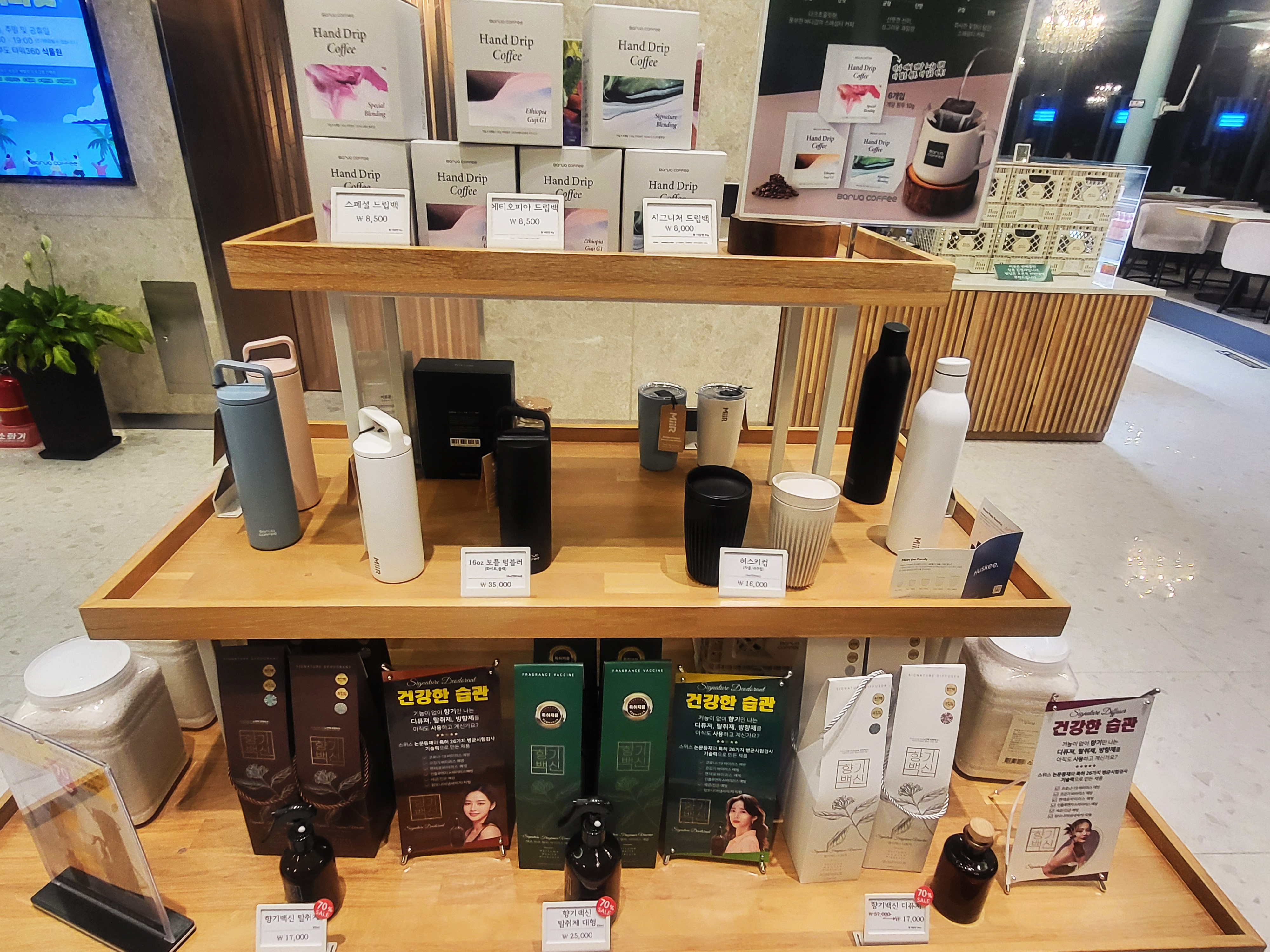 굿즈 판매대도 있어 텀블러, 드립백 같은 기념품도 구경했어요.