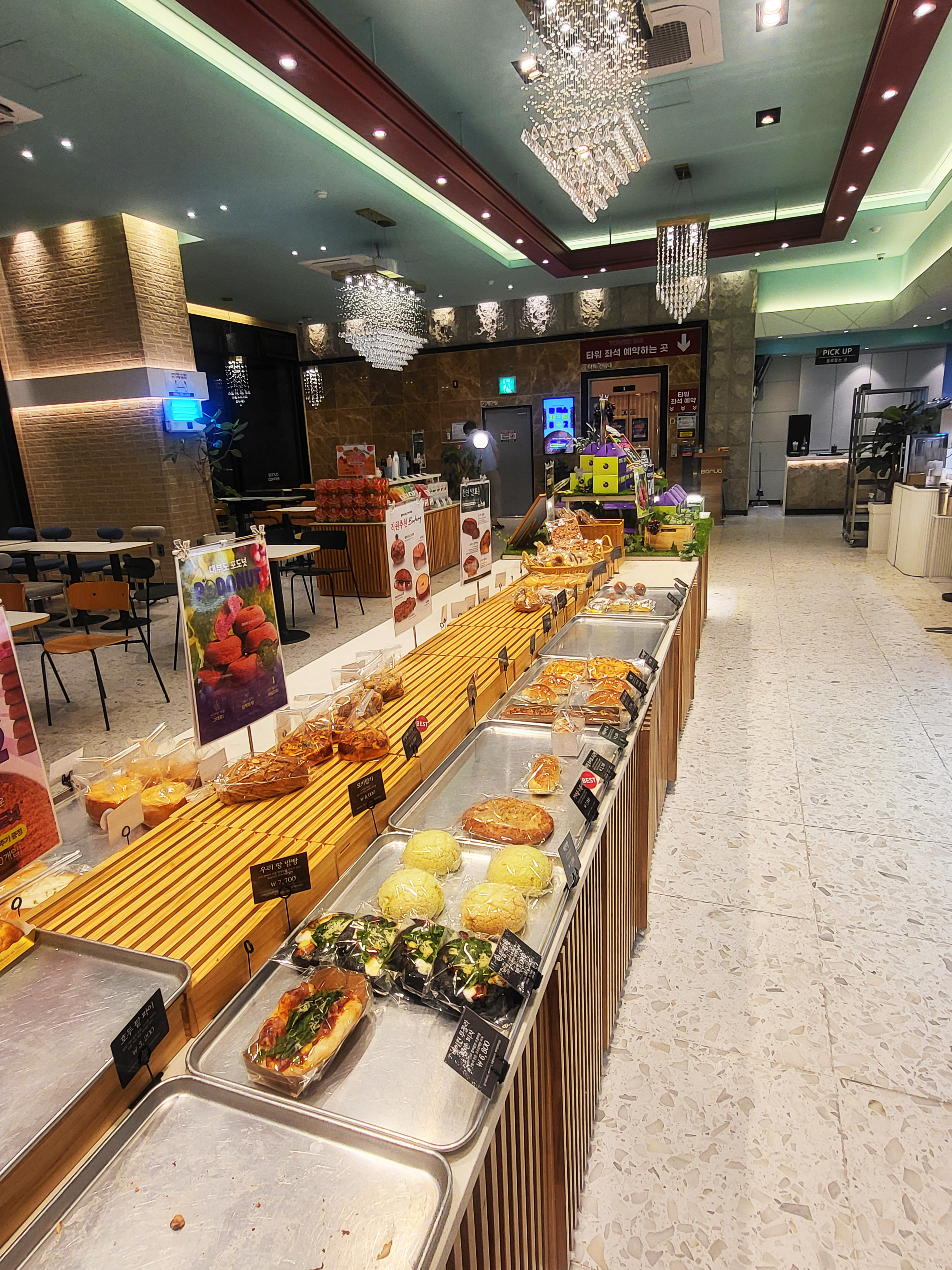 1층 베이커리 코너에서 결제 후 엘리베이터 타고 올라가요.