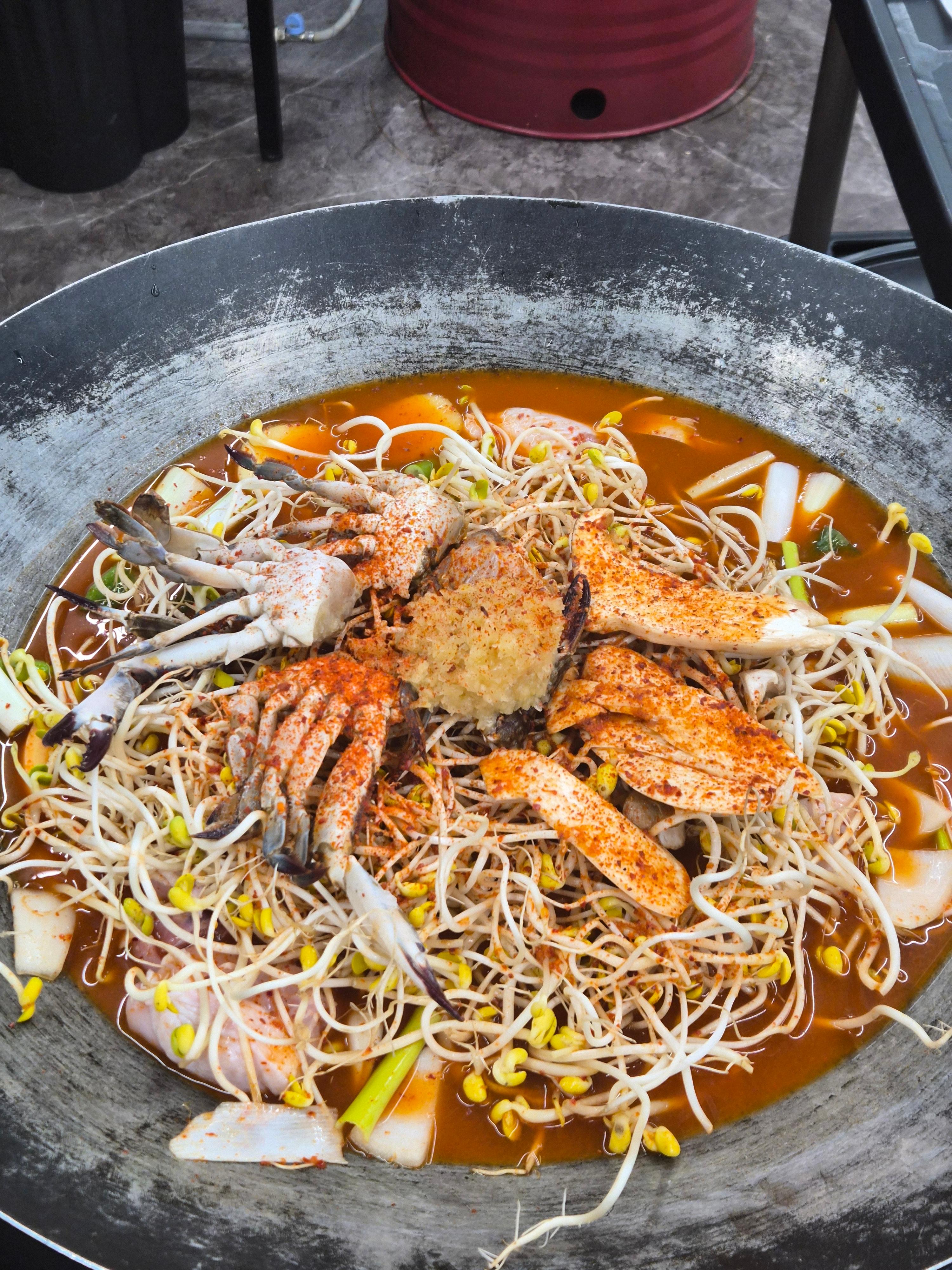 3. 비주얼 폭발! 연평도 꽃게품은 닭매운탕 (ft. 불쇼! 🔥)